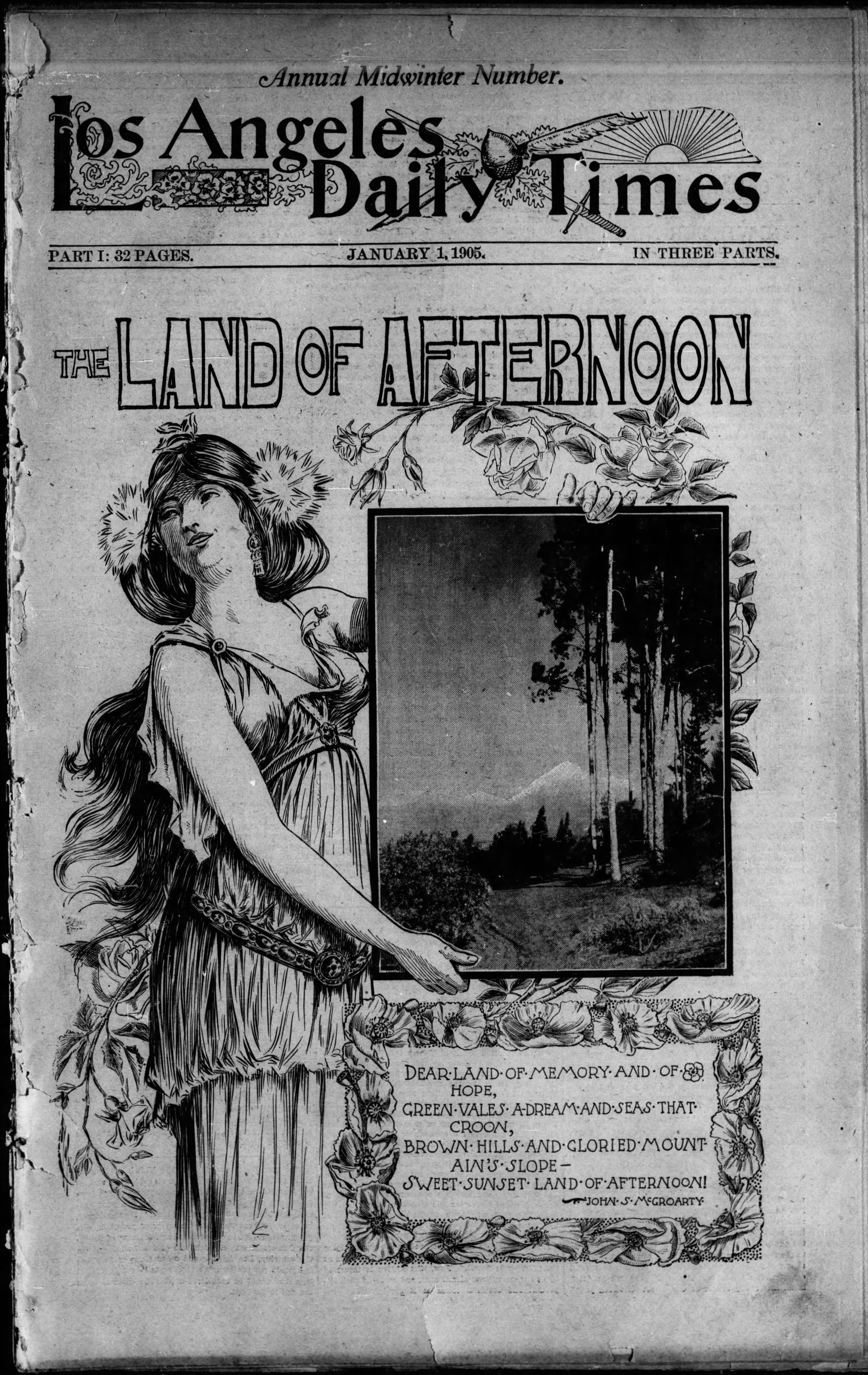 Most writers in the past have been content with painting the Pueblo de Los Angeles as a wee, sunburnt village without shade trees and vines. That is generally true of all business centers, but it seems strange never to have given thought to these acres upon acres of vines and vineyards, orchards and shade trees that surrounded the Pueblo, nor to have remembered the beautiful description of this valley of the Angels given by Fray Juan Crespi, the chronicler of the Spaniards when they made their first overland journey of exploration through this wilderness of the west. He said of this Valley that is was an extensive plain where a good village of Indians lived in a delightful place among trees along the river. After crossing the river, which he named Porciuncula, the expedition entered a large vineyard of wild grapes and saw an infinity of rose bushes in full bloom. He describes the soil as black and loamy and capable of producing every kind of grain and fruit which may be planted and records that they went west continually over good lands covered with grass. It gives a happy and very pleasing impression of the Valley that was to become ‘The City of Vines.’