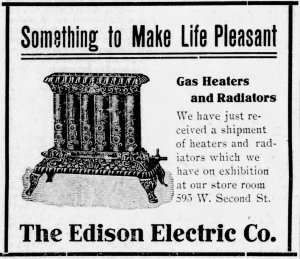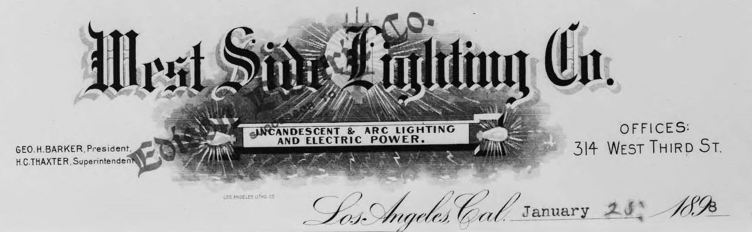 On June 5, 1896, the West Side Lighting Company was incorporated with a capitalization of $500,000, with George H. Barker, president; W. S. Wright, vice-president; W. R. Staats, secretary and Treasurer, and E. E. Peck and E. F. Billmeyer constituting the first board of directors. On July 6th, of the same year, Mr. Jason Evans succeeded Mr. Billmeyer, and on December 12th, Mr. J. H. Holmes succeeded Mr. Peck. On September 28th, also of 1896, a $300,000 bond issue was authorized, and the enterprise was launched into a solid, full-fledged corporate existence.