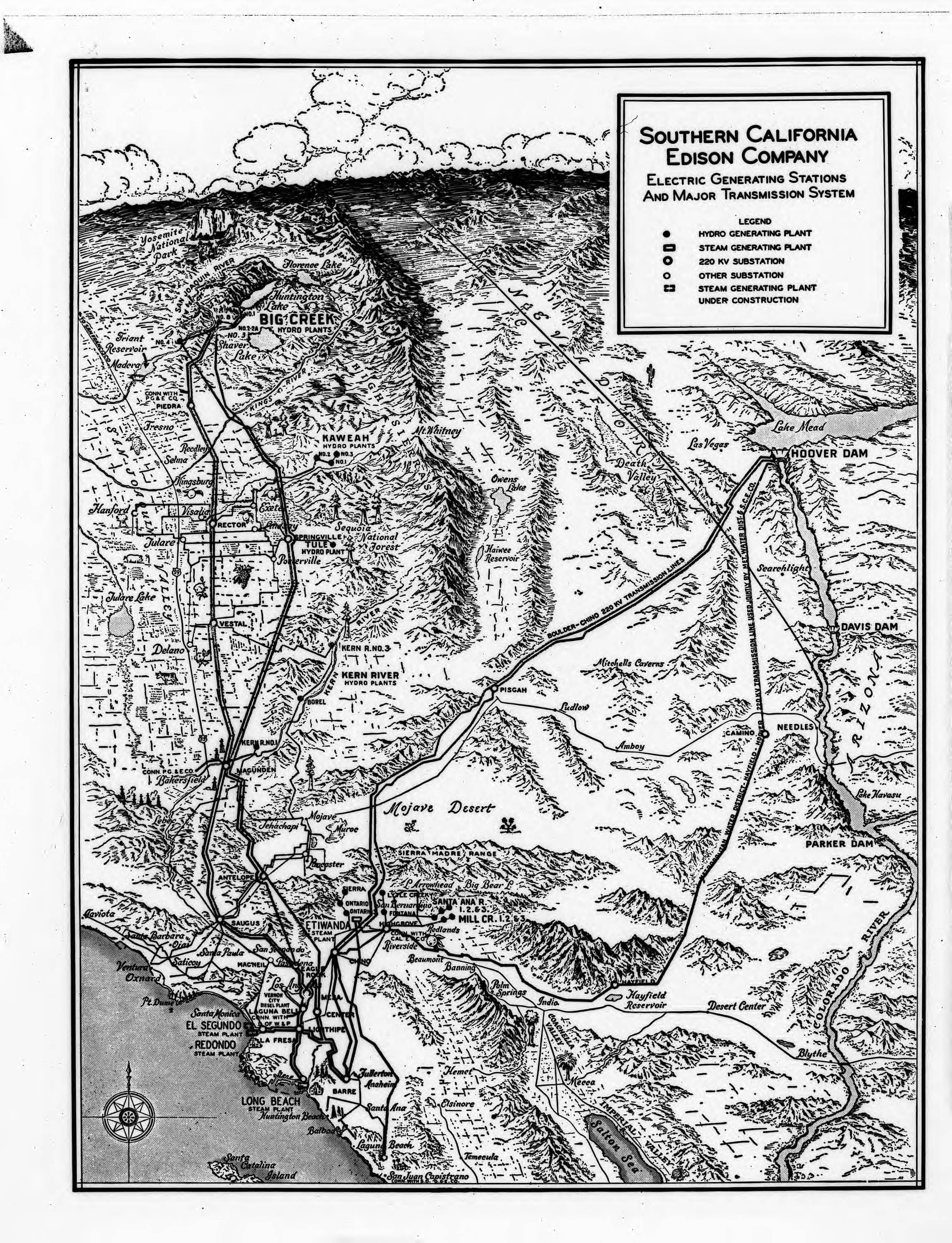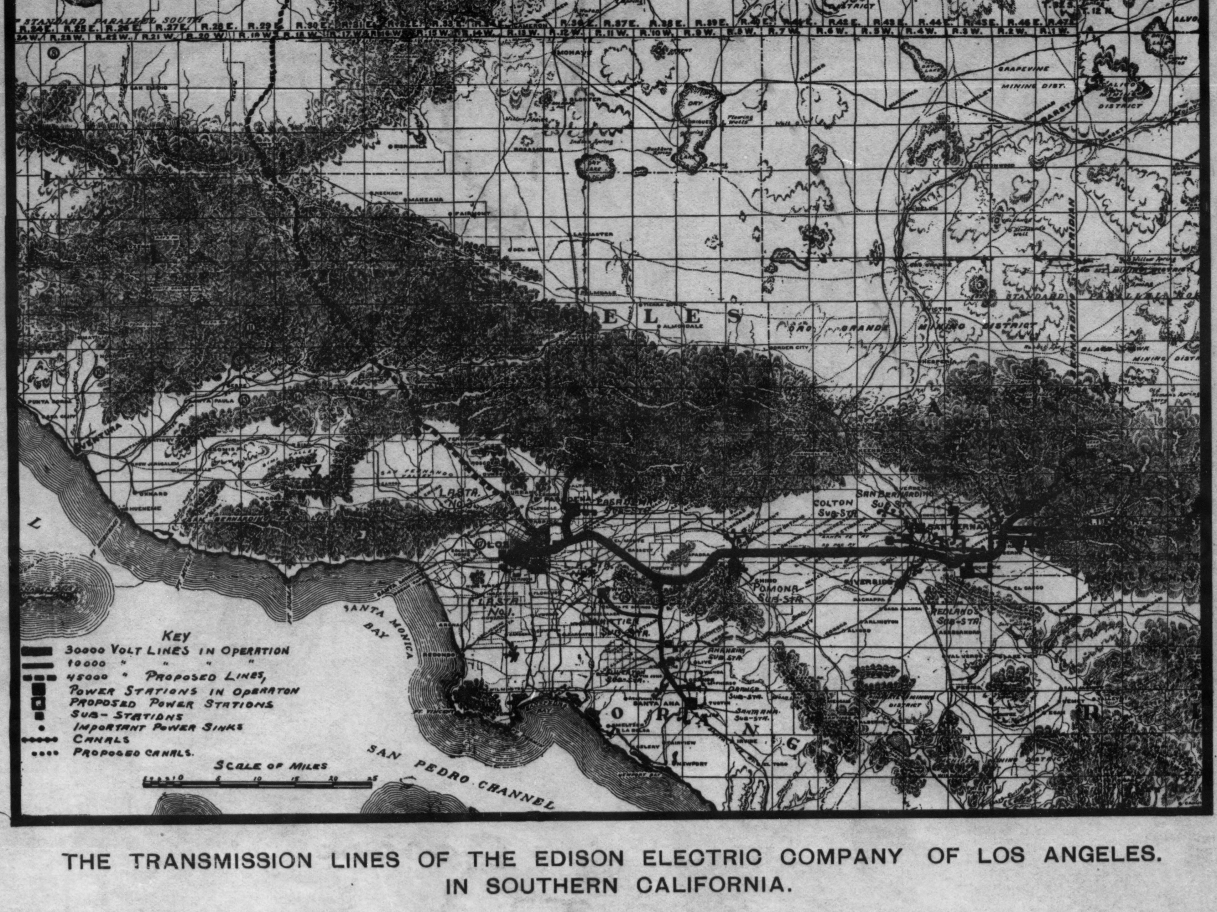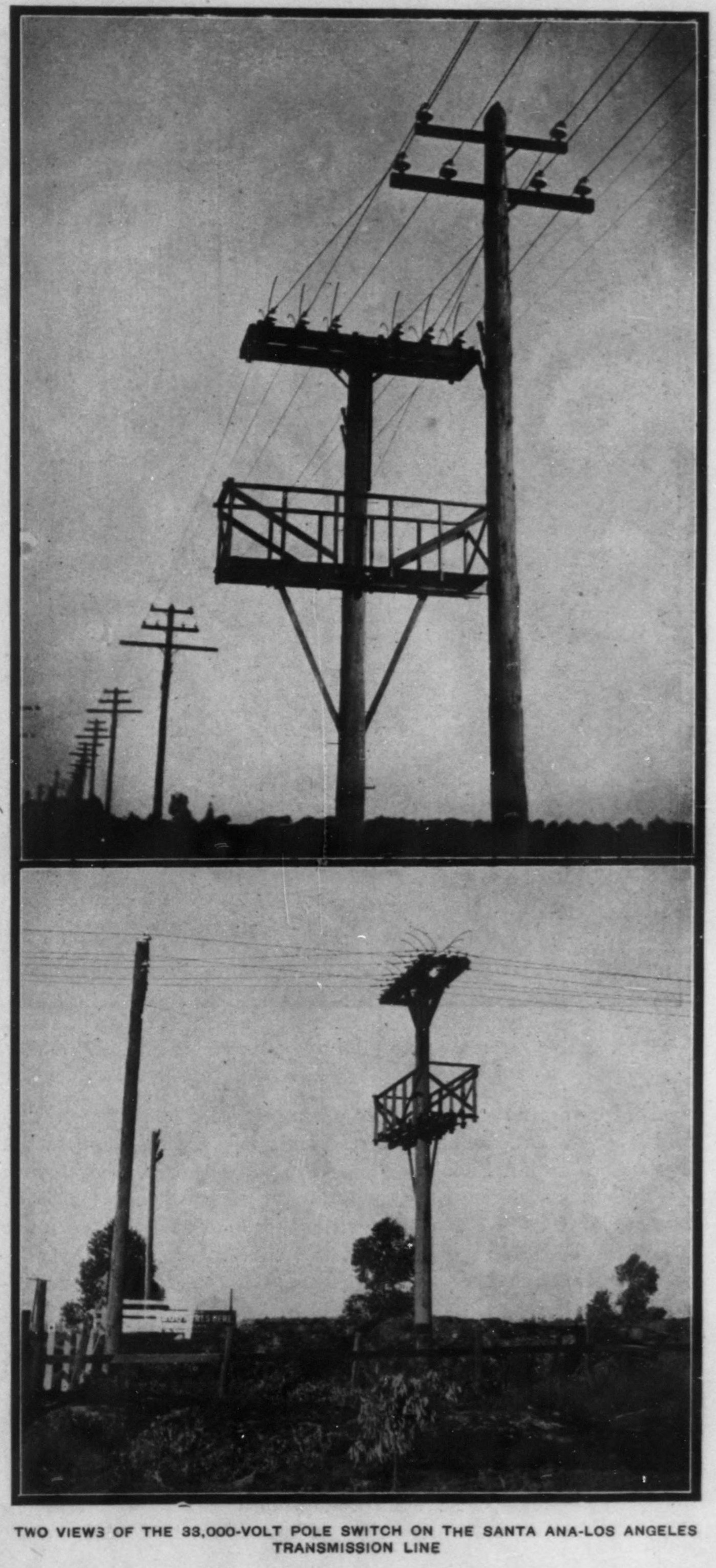 “[Of all the world, America is infinitely far in the lead in the practical applications of transmission engineering, and of all America, California shows greater development along this line than any other State in the Union, yet nowhere in California is there to be found more interesting long distance high voltage work of almost every conceivable description than exists in the southern portion of the State, where in a single system of The Edison Electric Company, of Los Angeles, alone may be marked not only the first polyphase transmission station ever built for commercial service in America, but where also may be traced, step by step, every advance made in the art of electric power transmission down to the present time.