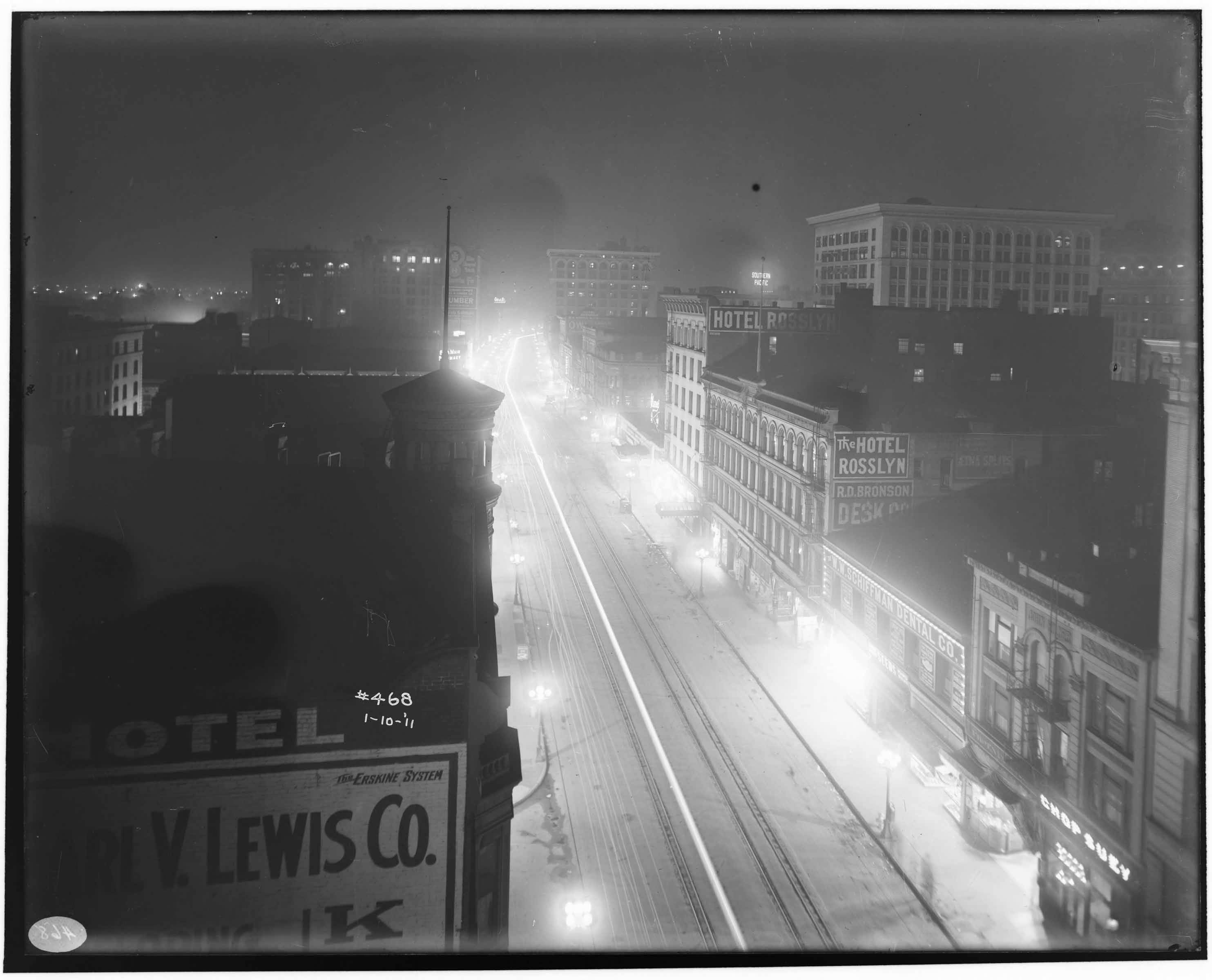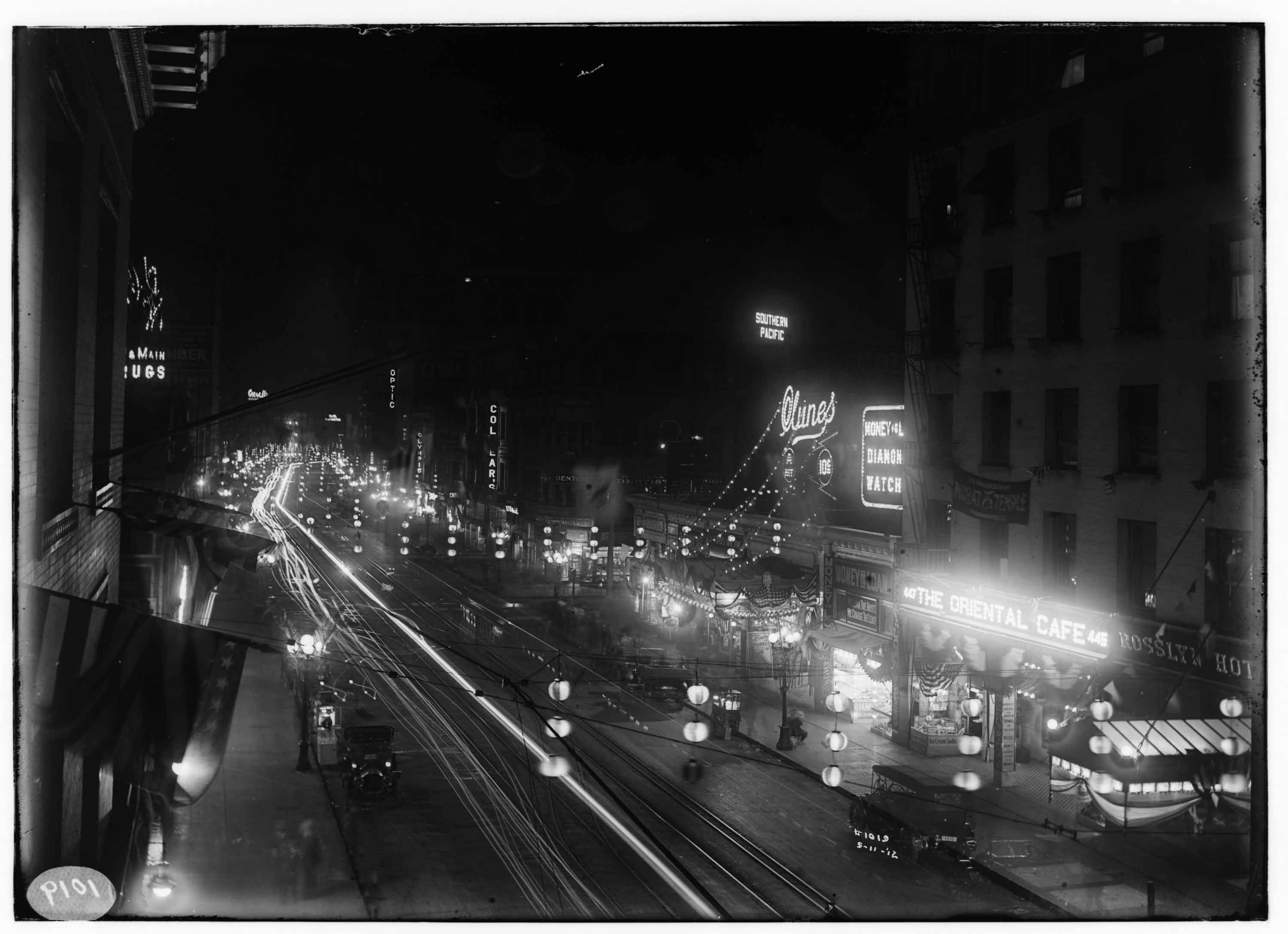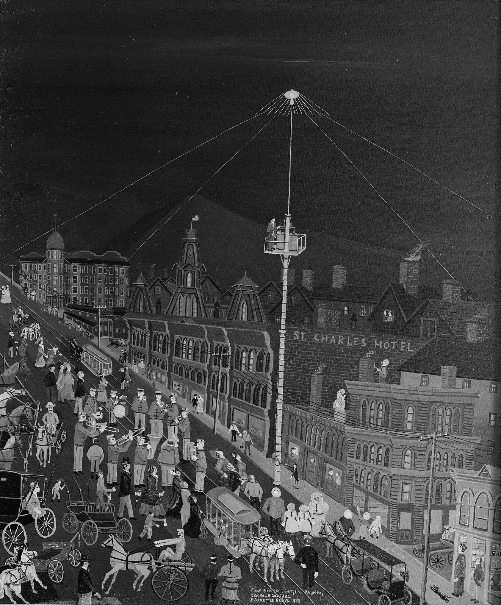 “In 1876, the common council of the City of Los Angeles ordered four arc lights installed in various places in the fledgling town for street lighting.” -William H. Workman, “The City That Grew,” Mirror-Press, Los Angeles, 1929