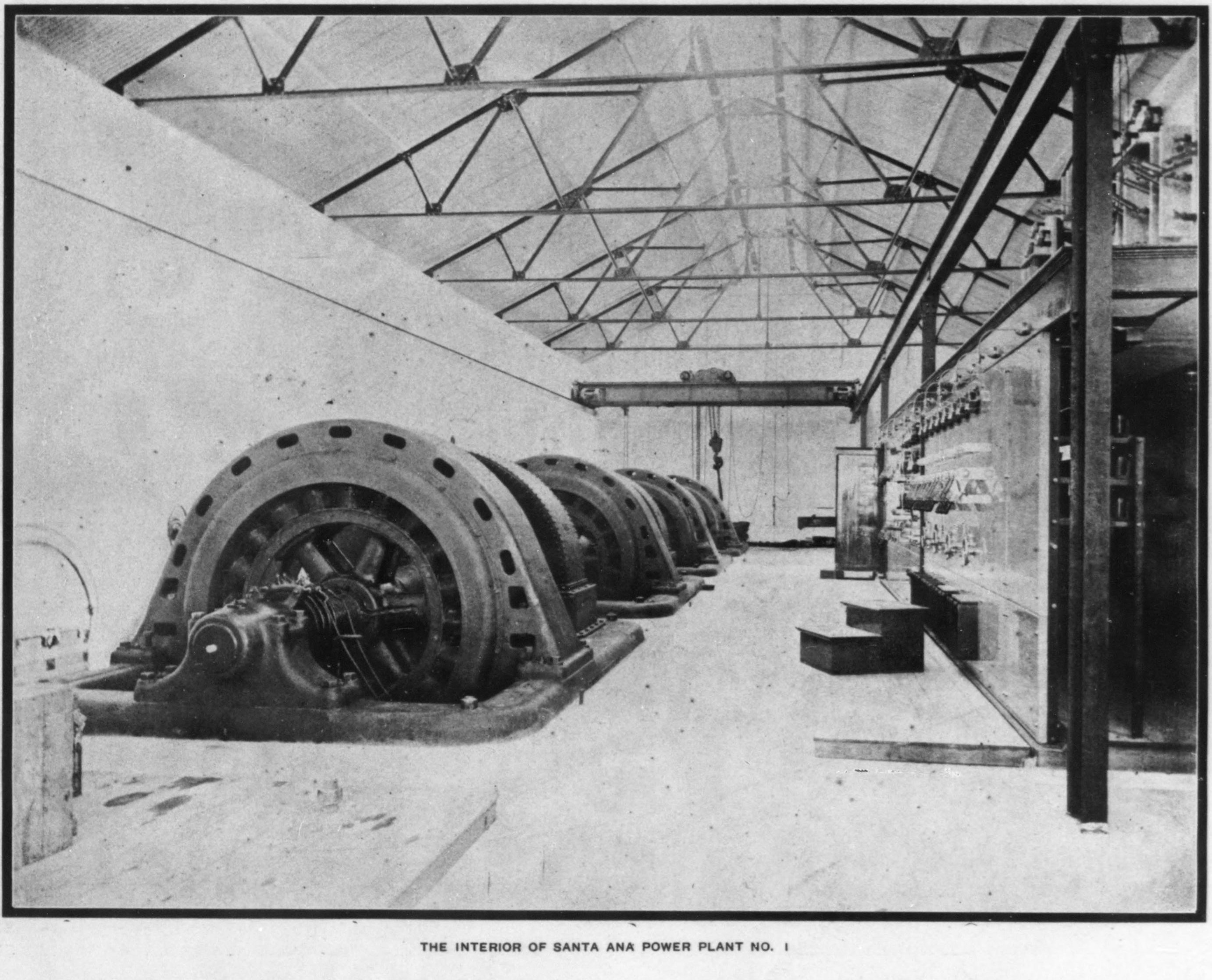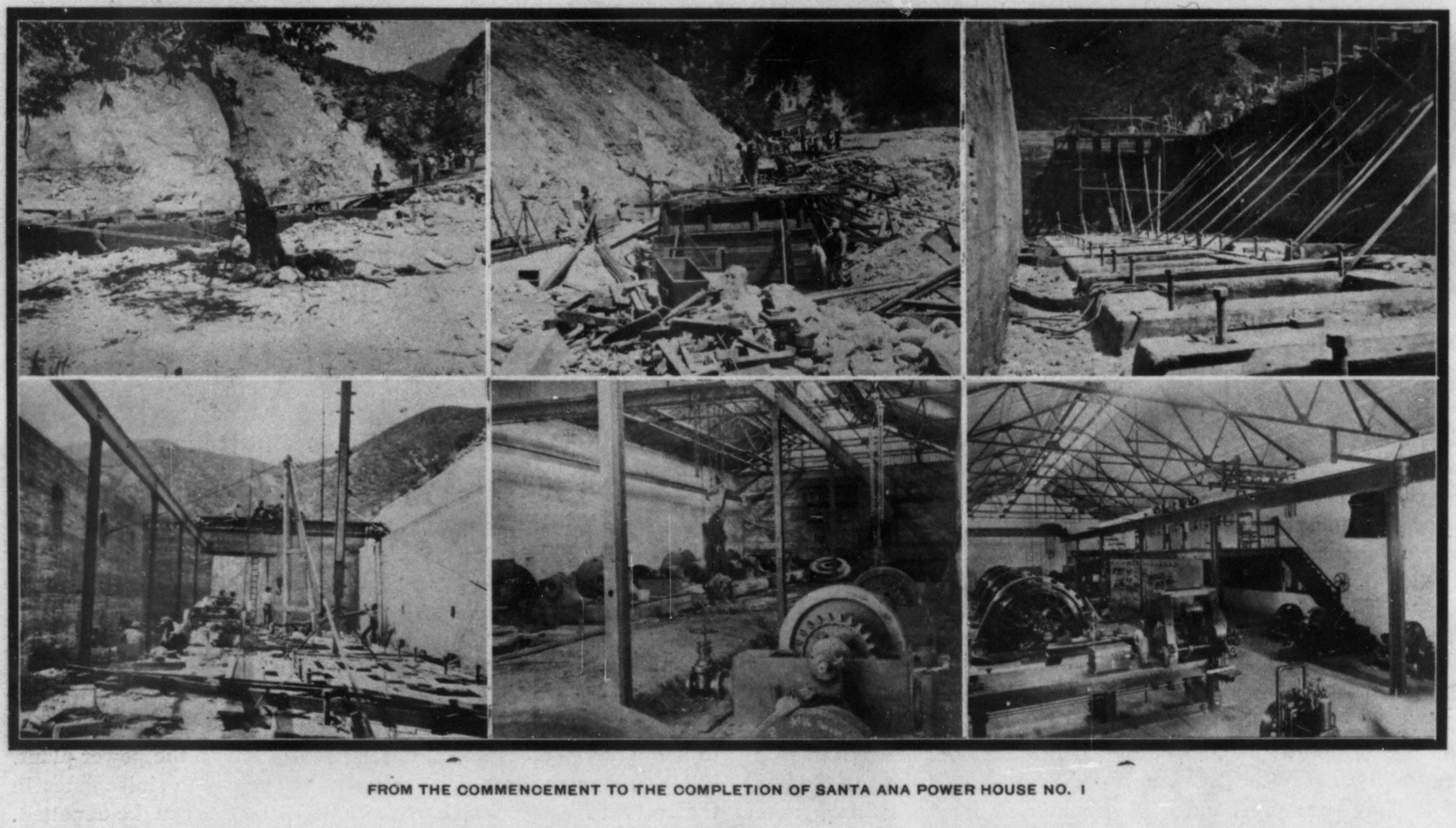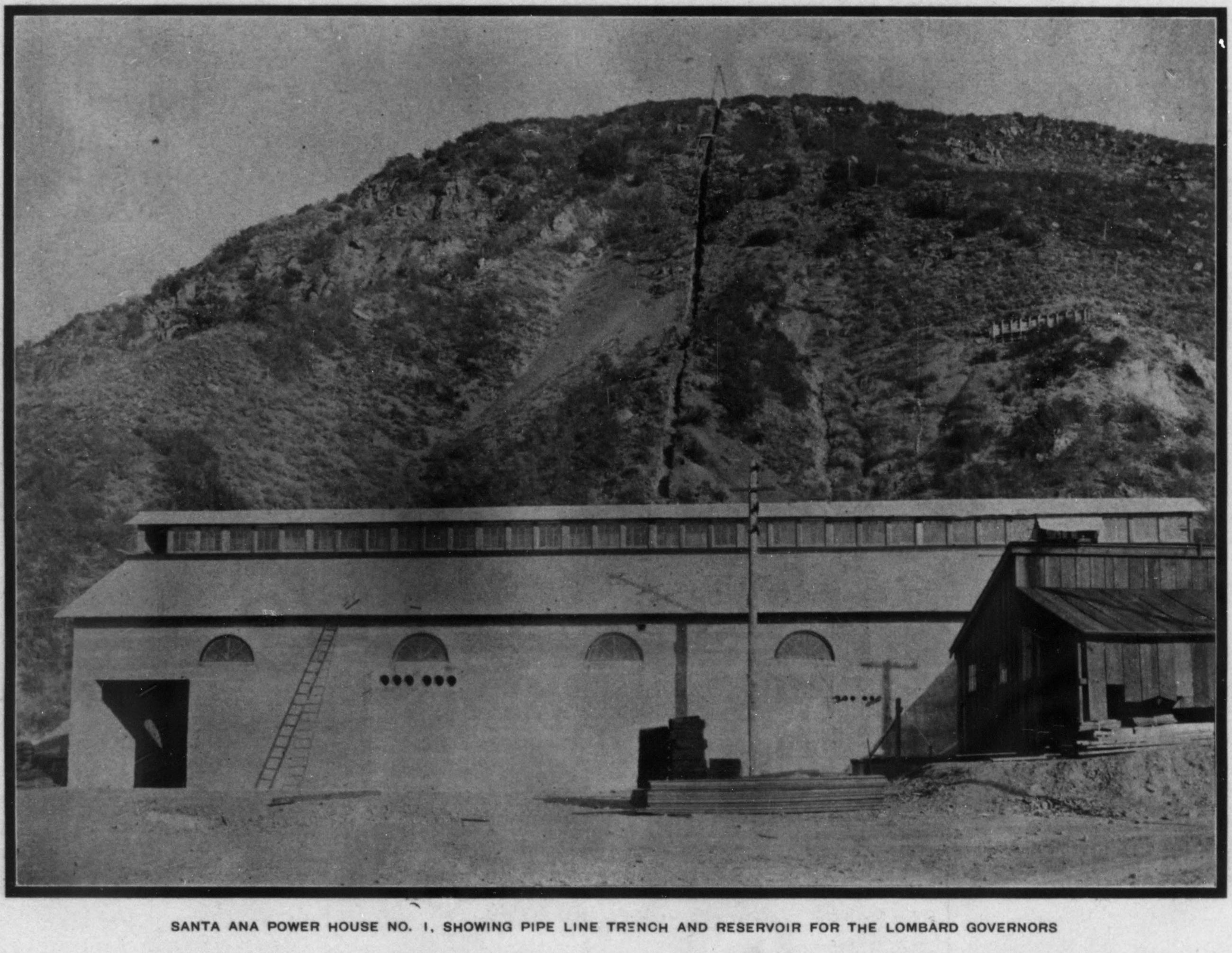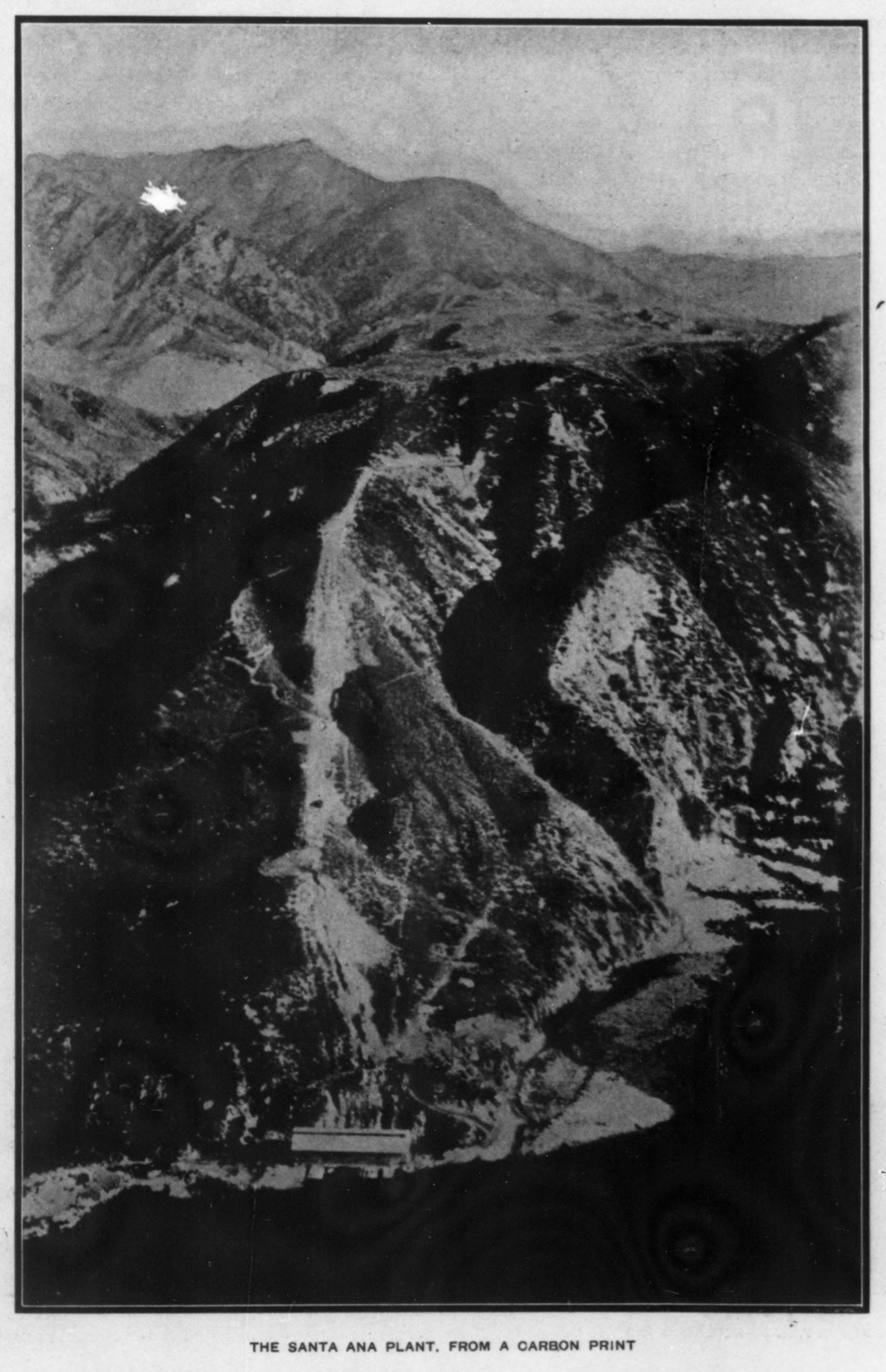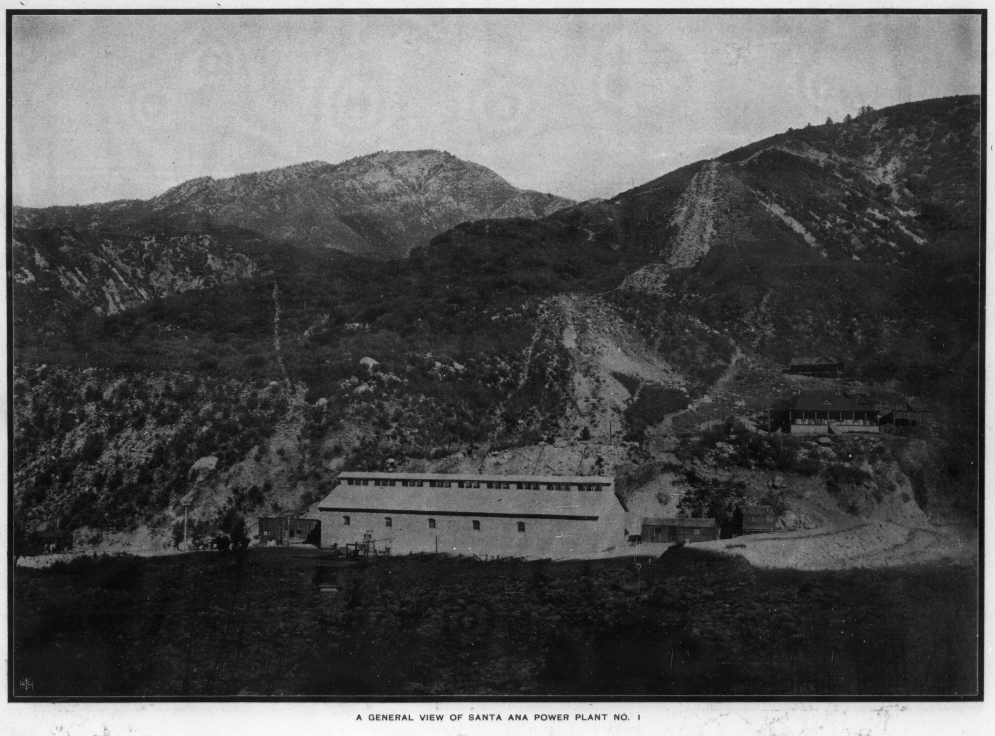 Southern California Power Company’s water power plant, in Santa Ana Canyon, San Bernardino County, 4,000 horsepower.