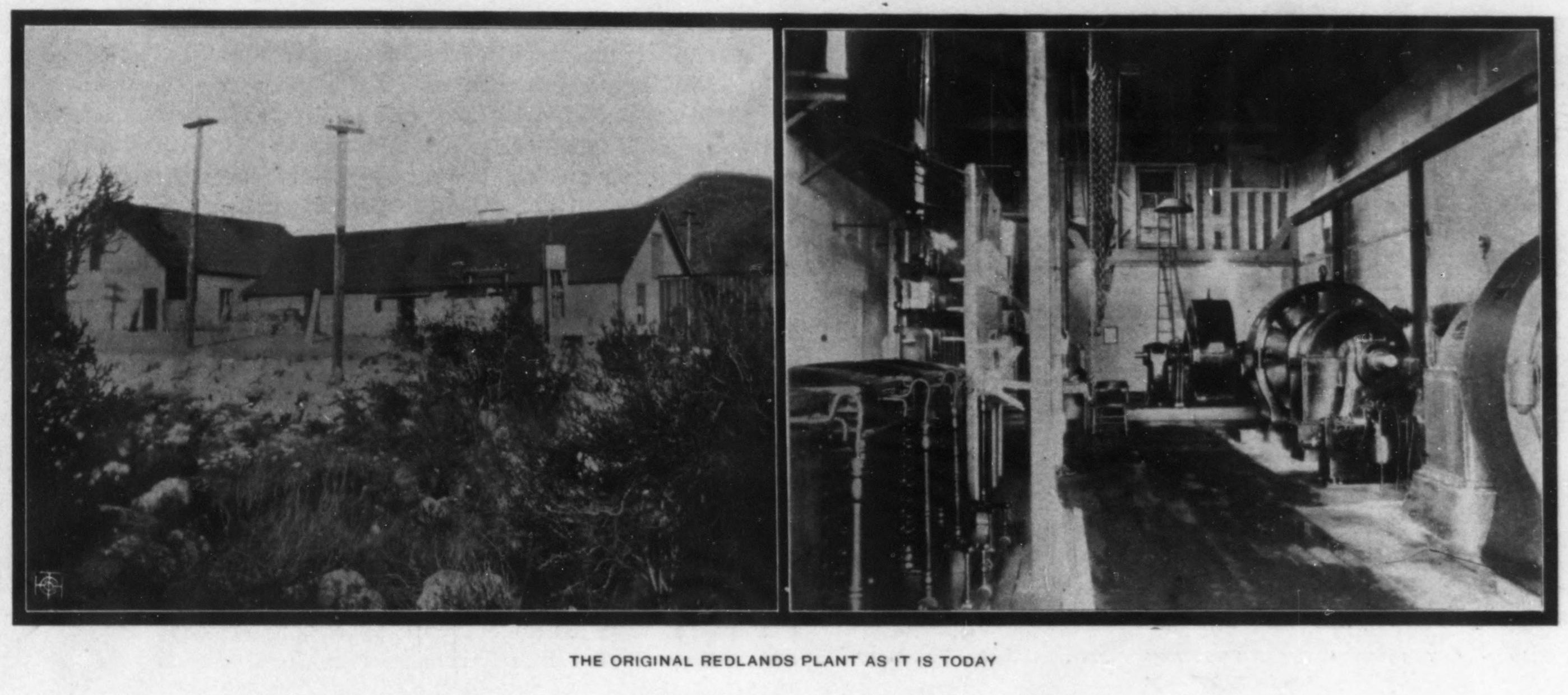 On the other hand, if the present giant system be considered from the standpoint of its transmission development, interest naturally centers in the system of the Redlands Electric Light and Power Company, which bears influences second to none not only in point of historical significance, but in point of rapid growth. By right of seniority, then, the Redlands system should first receive attention.