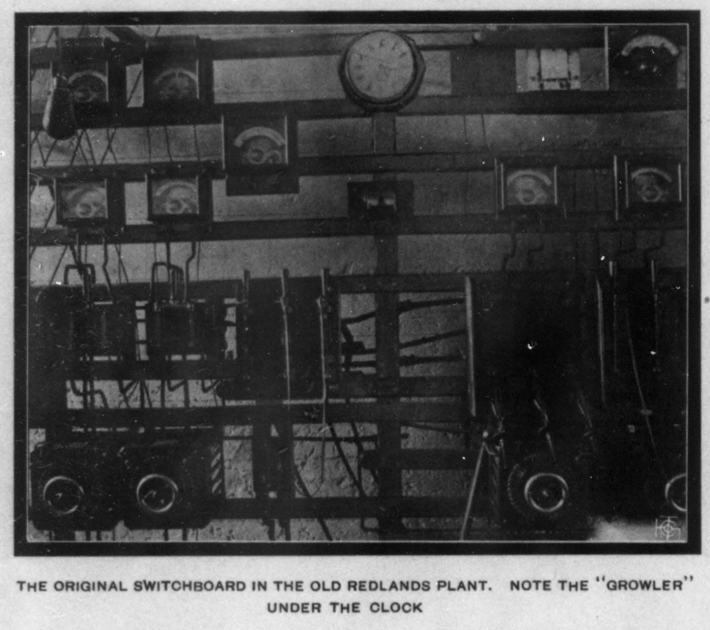 At the time of installation the switchboard was equipped by the General Electric Company with generator switches consisting of common 500-volt, triple-pole, double-throw switches, such as had been previously used in railway work, this being the best type of switch manufactured at that time. These switches could never be pulled on a load at the machine voltage, and as the busbars were in duplicate, when it became necessary to change over the station operators were compelled to break the field circuit on the machine and shut down the plant. There is now on the system of the Redlands company the first three-phase generators, the first synchronous motor and the first induction motor ever turned out for commercial use by the General Electric Company, and it is interesting to note that they are still in daily service as installed, with every indication that they will continue in their duties for years to come.