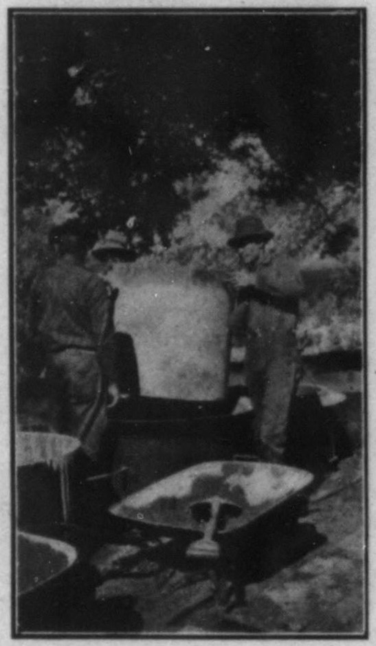 We did not go through the final tunnel, for the water was so banked up at the penstock that the tunnel was filled to its roof and indeed it was very ‘low bridge’ in the next to the last tunnel which we traversed. Next came an arduous climb up and around the mountain on which the pipe line is placed, then the equally arduous descent down the pipe line to the powerhouse, where, thanks to a thoughtful host and hostess, dinner was awaiting our arrival. And you may be assured that after we had finished there was no dinner left to ‘warm up’ for supper.