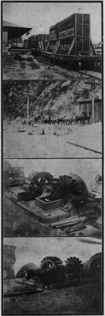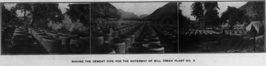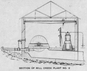 Redlands Electric Light and Power Company’s water power plants, Mill Creek Canyon, San Bernardino County, No. 1, No. 2 and No. 3, of 1,250 horsepower, 625 horsepower and 3,000 horsepower capacity respectively.