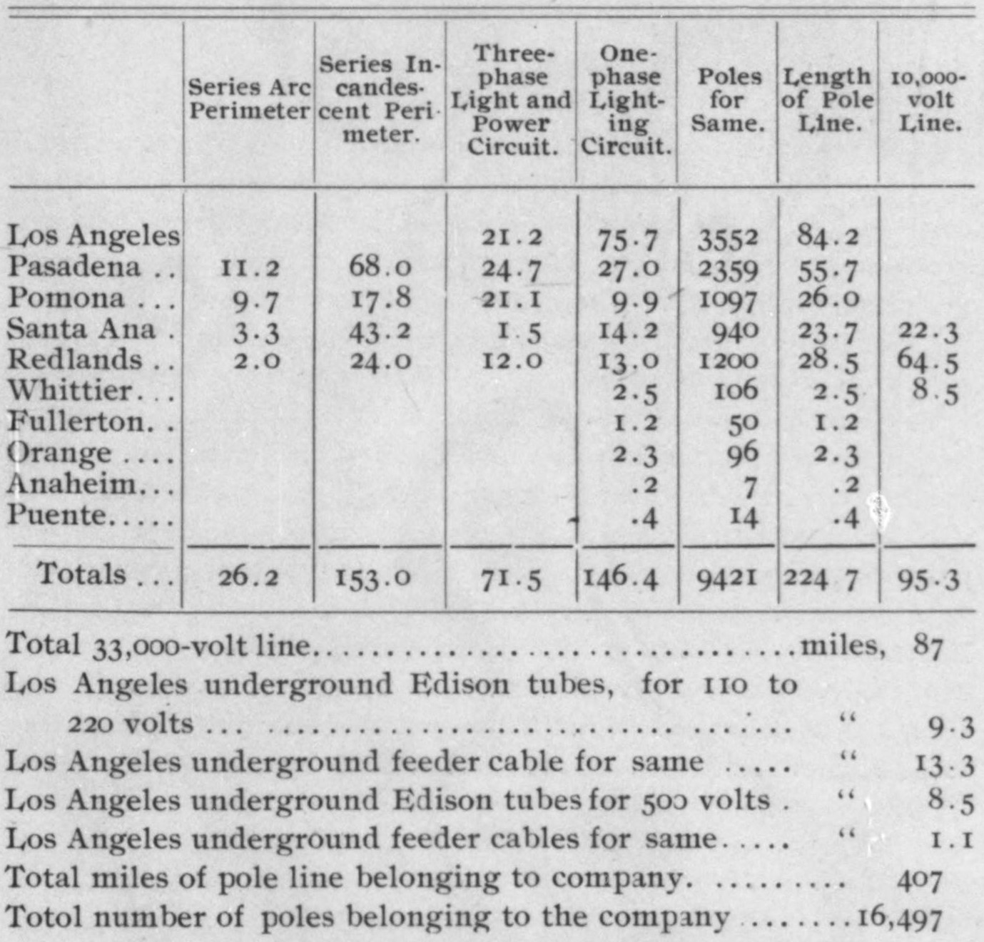 To give an idea of the magnitude of the property of The Edison Electric Company the following table is presented, the lengths being given in miles: