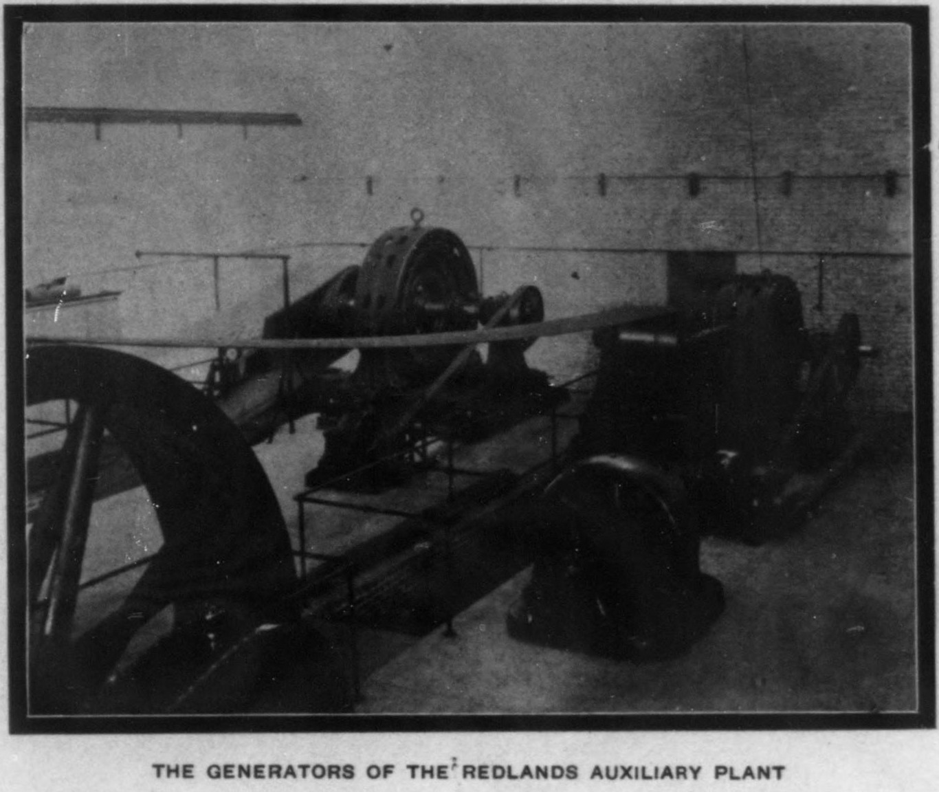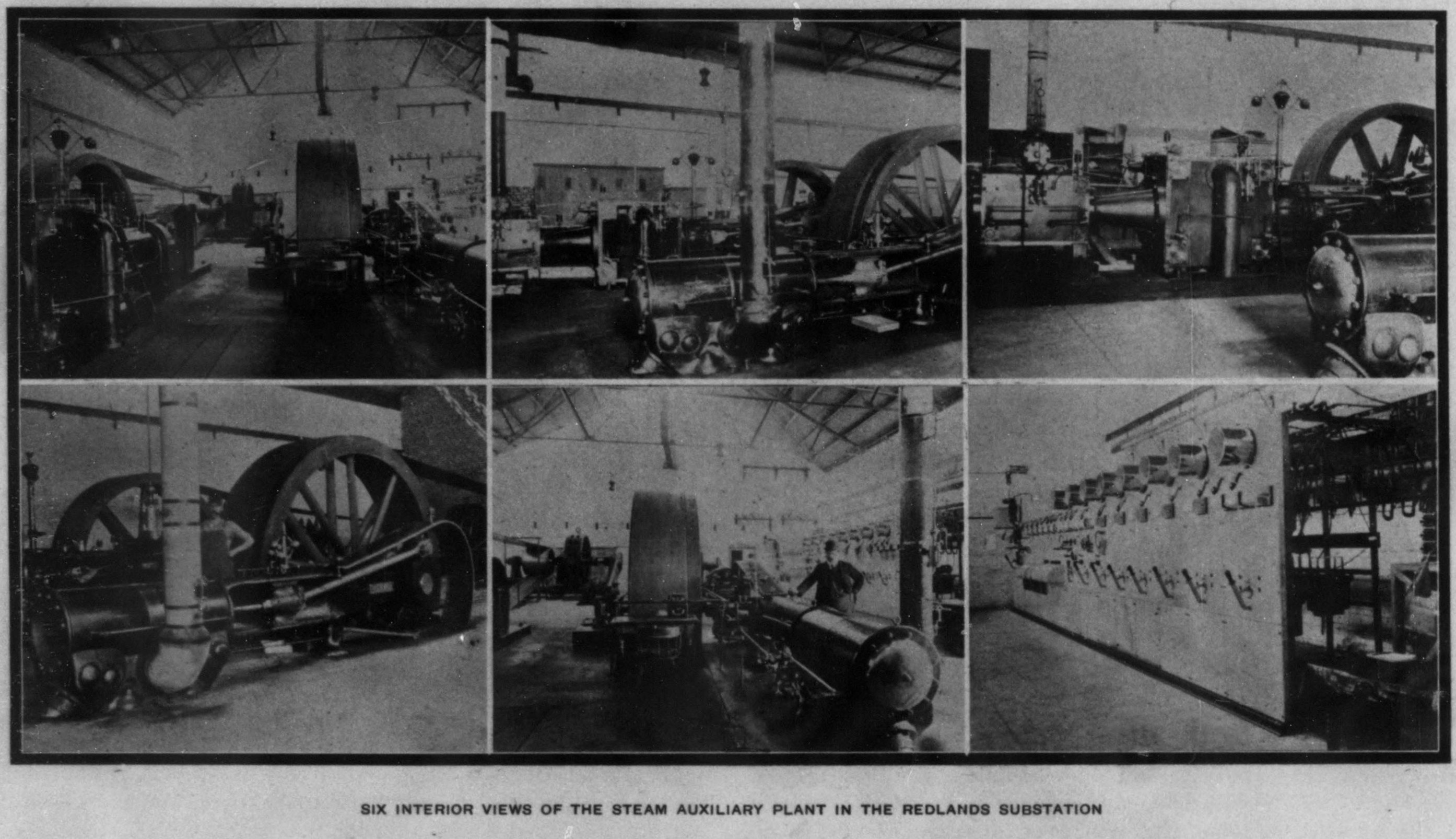 Redlands substation and steam driven plant, 834 horsepower capacity.