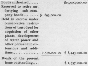 The bond interest in the above statement is for the entire mortgage debt now outstanding, whereas the earnings include no income from the Redlands hydraulic plant, No. 3, which will soon be operating with an additional maximum capacity of 4,000 horsepower.