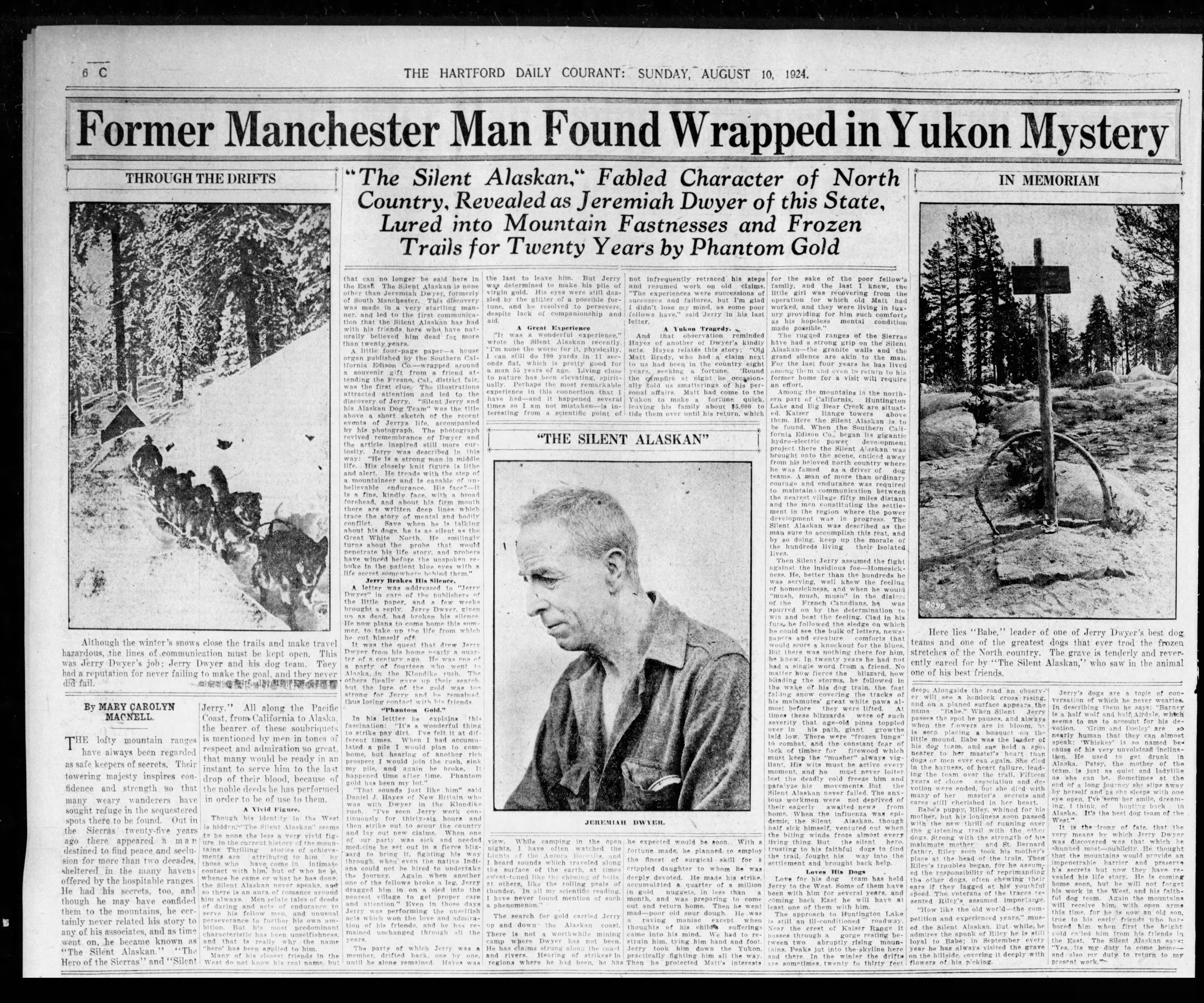 -Excerpt courtesy of The Hartford Daily Courant, “Former Manchester Man Found Wrapped in Yukon Mystery,” by Mary Carolyn Macnell, August 10, 1924