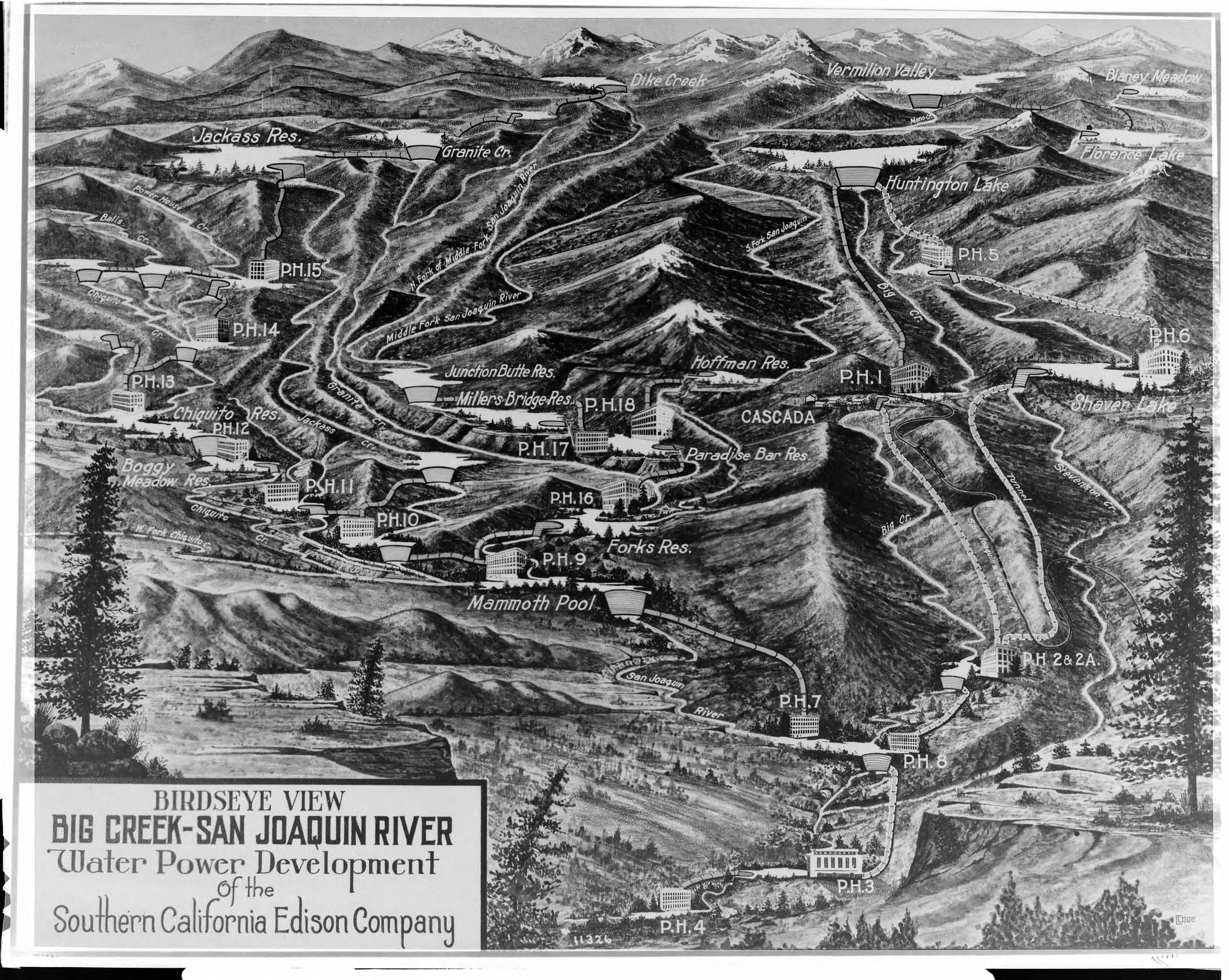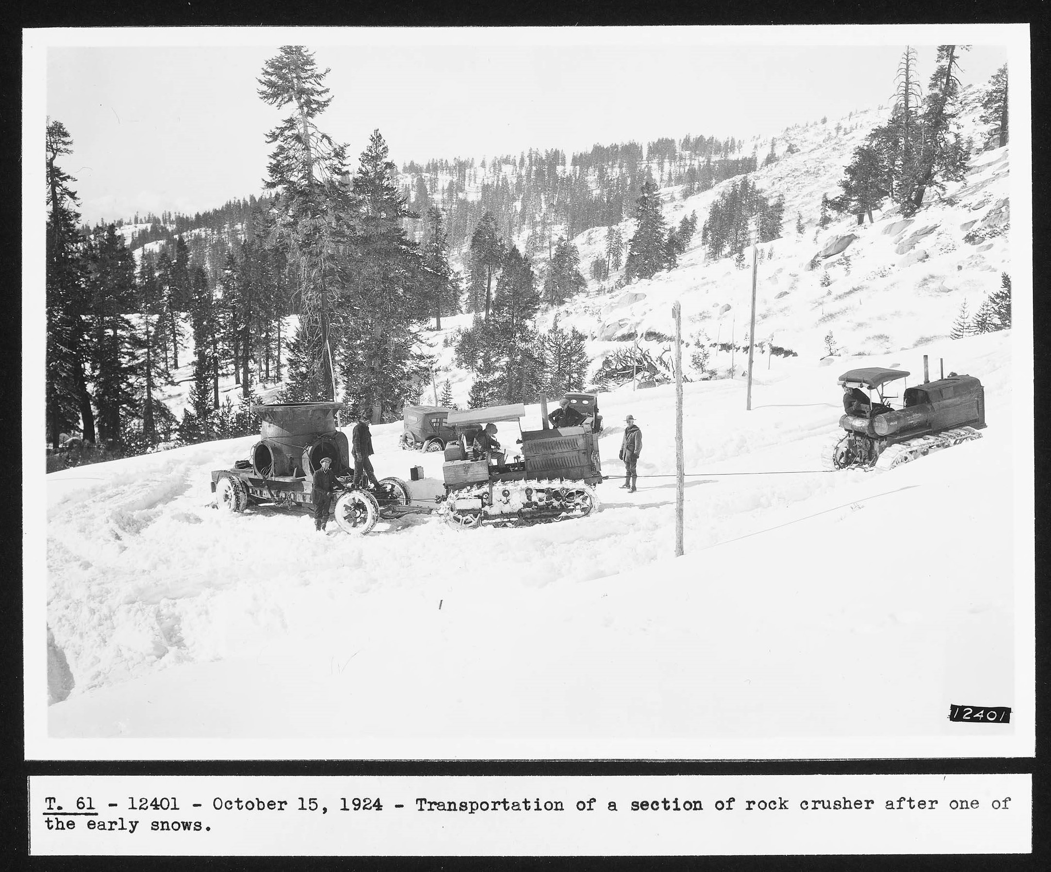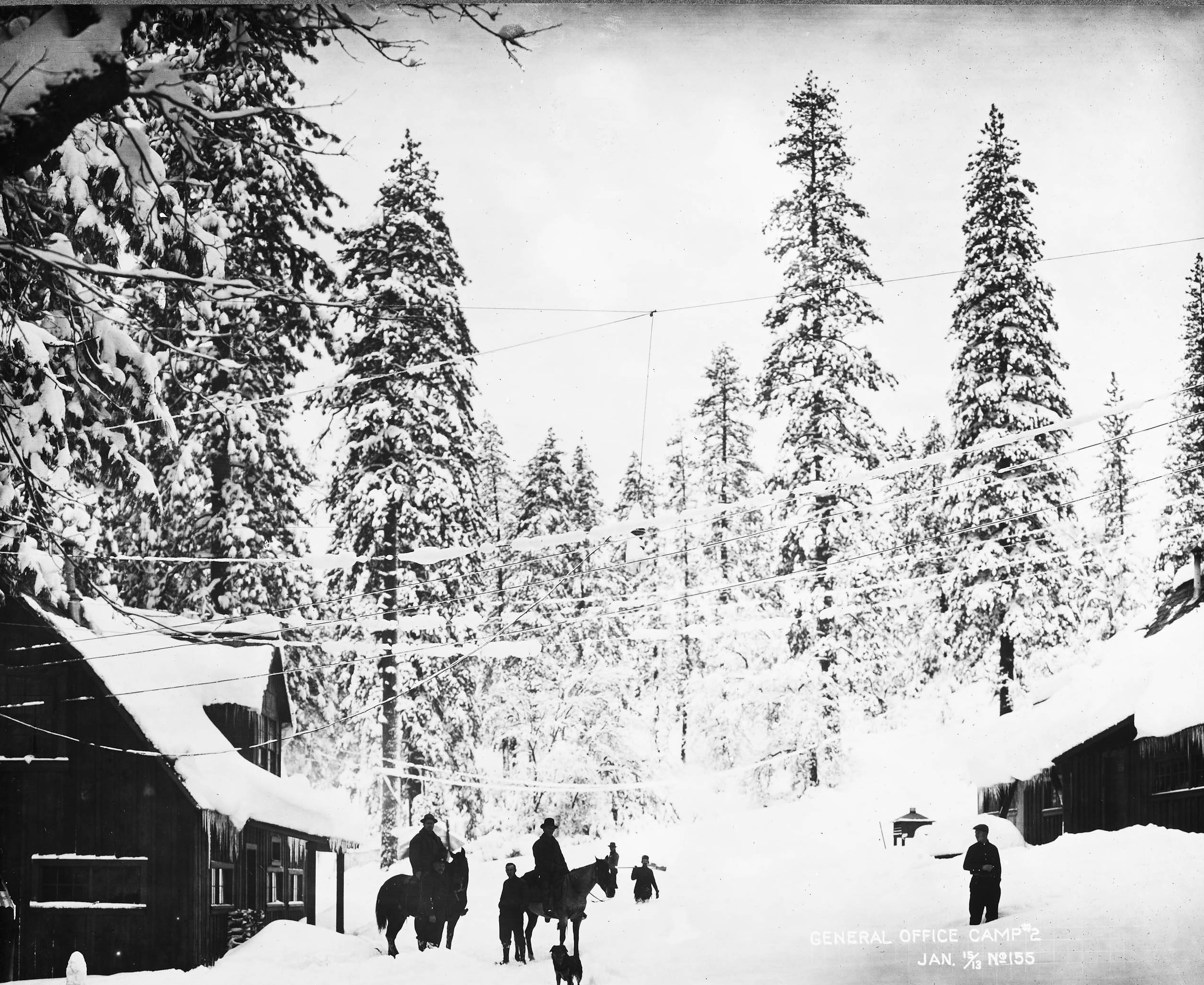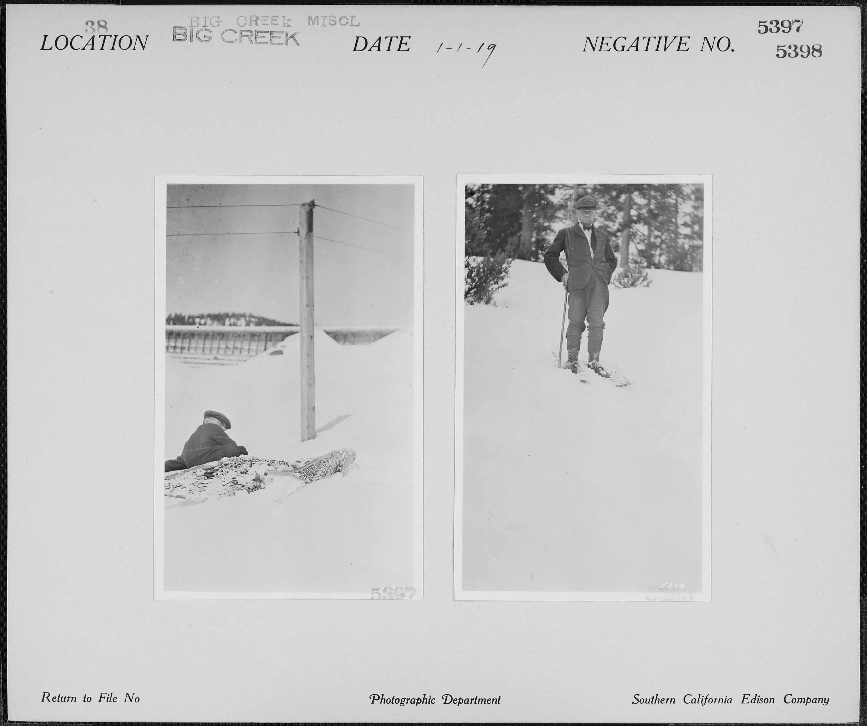“The winter snows of the Sierras were the entire reason for the Big Creek Project. As the heavy snowpack melted, the runoff water was stored in reservoirs, then used to generate electricity before going down to irrigate crops in the San Joaquin Valley below. Unfortunately, the heavy snowfalls at higher altitudes made construction of portions of the project very difficult, shortening the working season and making transportation difficult.”