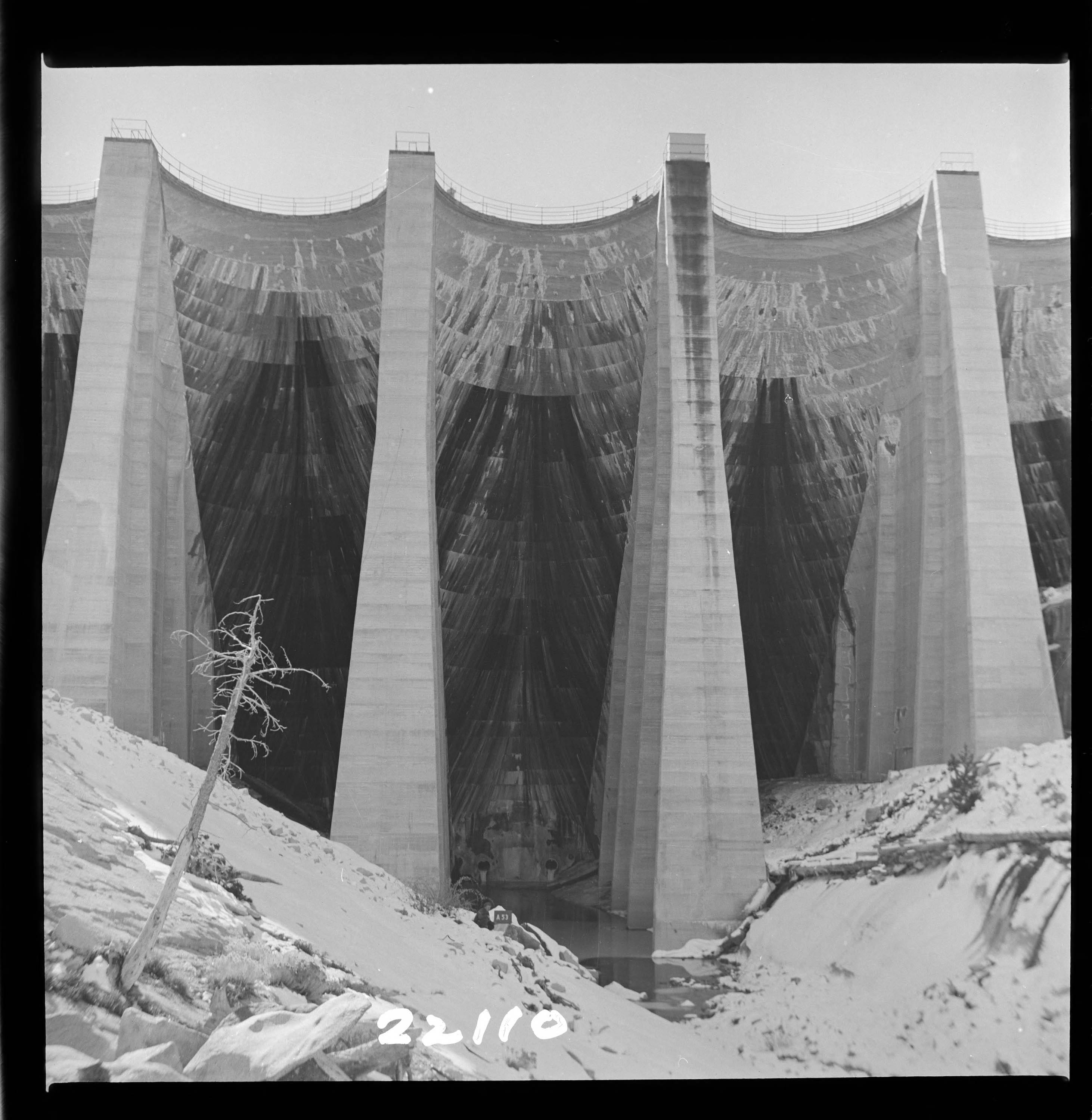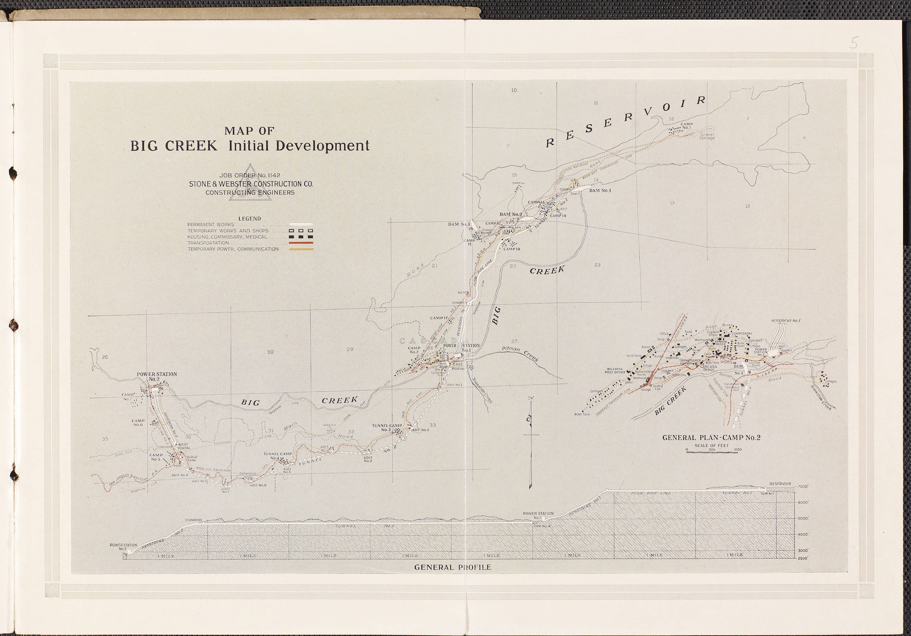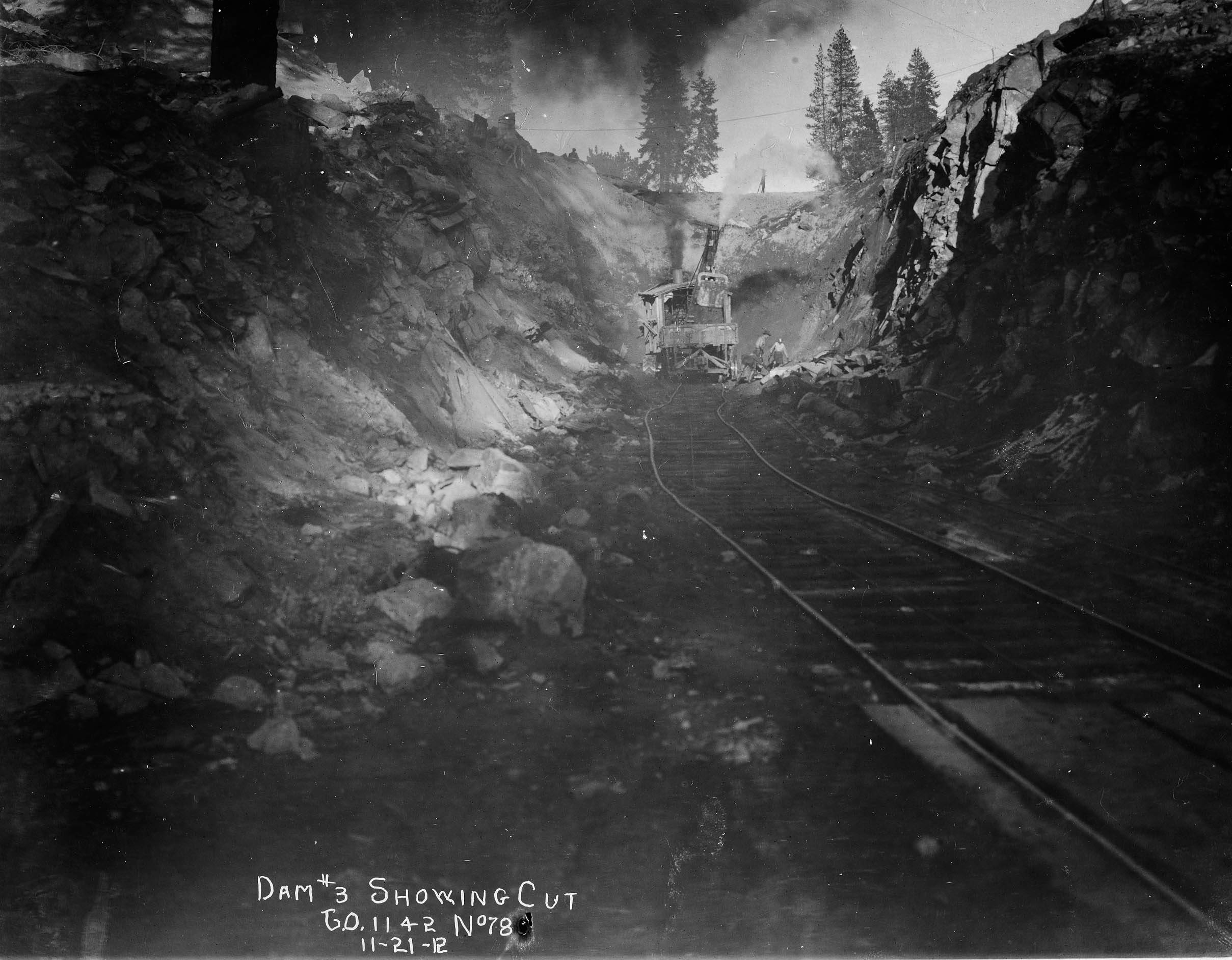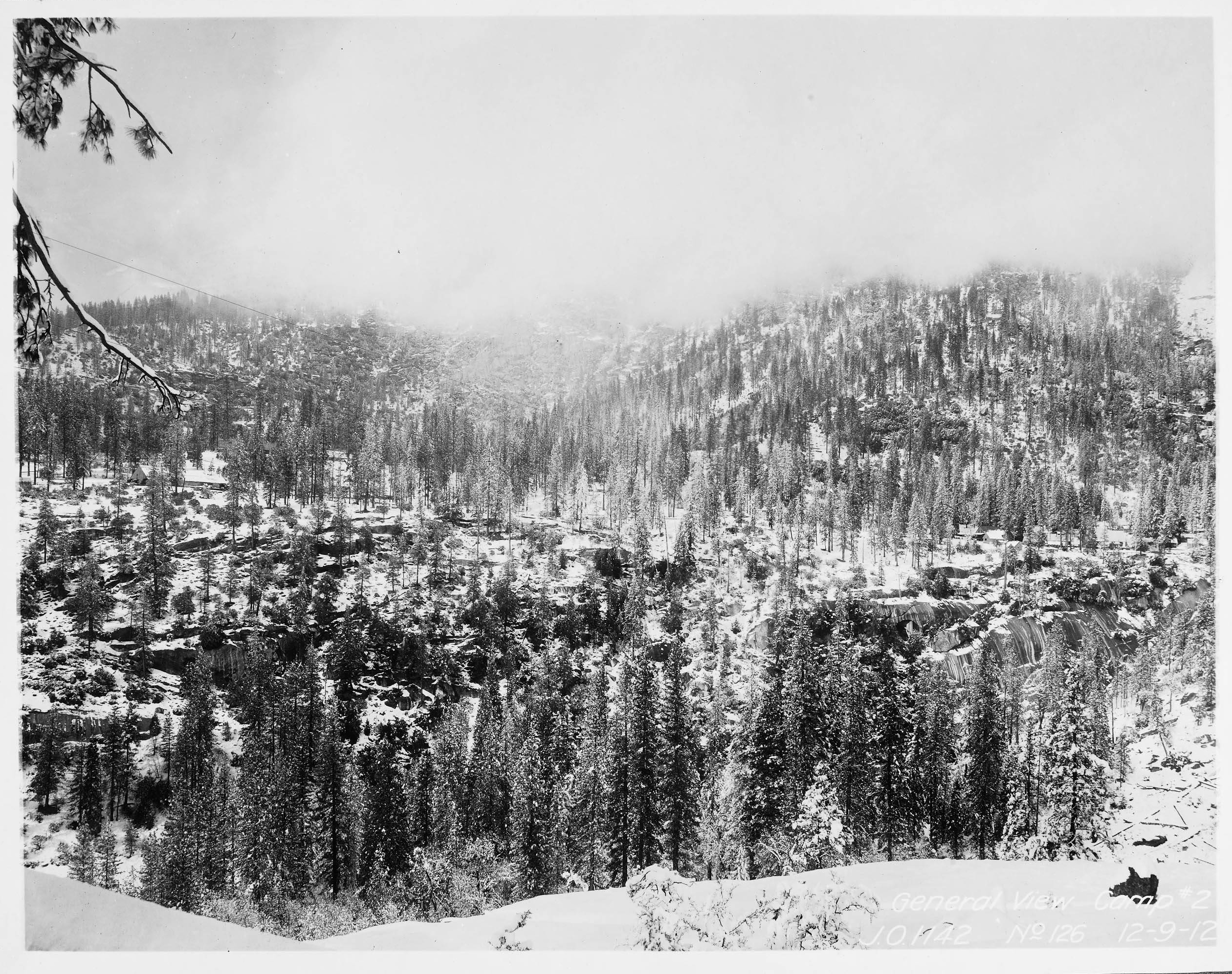“The winter snows of the Sierras were the entire reason for the Big Creek Project. As the heavy snowpack melted, the runoff water was stored in reservoirs, then used to generate electricity before going down to irrigate crops in the San Joaquin Valley below. Unfortunately, the heavy snowfalls at higher altitudes made construction of portions of the project very difficult, shortening the working season and making transportation difficult.”
