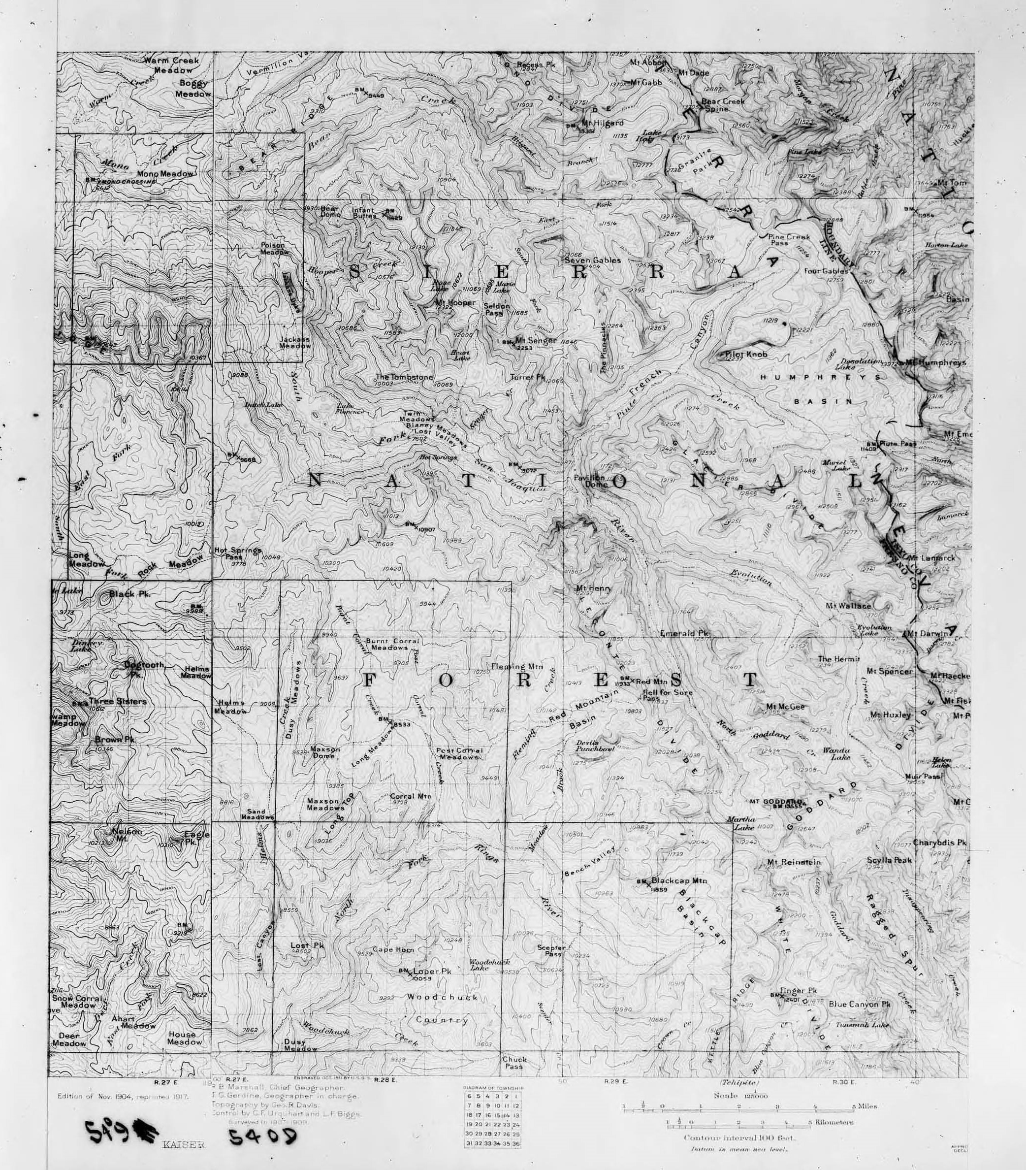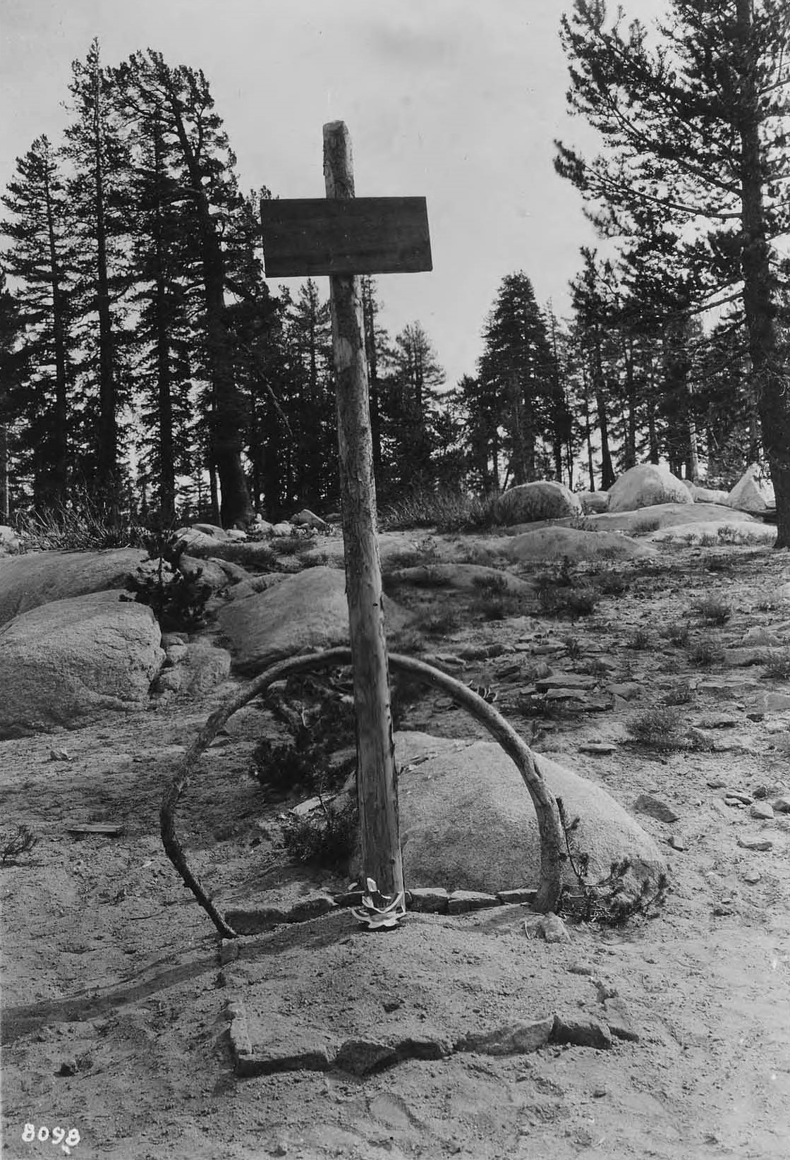 In September, 1922, Babe, the leader of the Alaskan dogs, died. Jerry buried her on Kaiser Pass, where Whiskey and Trim found a resting place subsequently. Their graves have been marked with an appropriate redwood slab, made and erected by the United States Forest Service. Before the marker was erected there was no identification other than a border of stones around each grave. Since they are alongside the main road, they have become a center of attraction for passing motorists. On numerous occasions I have stopped to join a group-out of curiosity — as it has always been interesting to hear the conjectures. Once when there was only a single grave, one member of such a group, after a long powwow, opined, ‘Some poor old prospector, I suppose.’