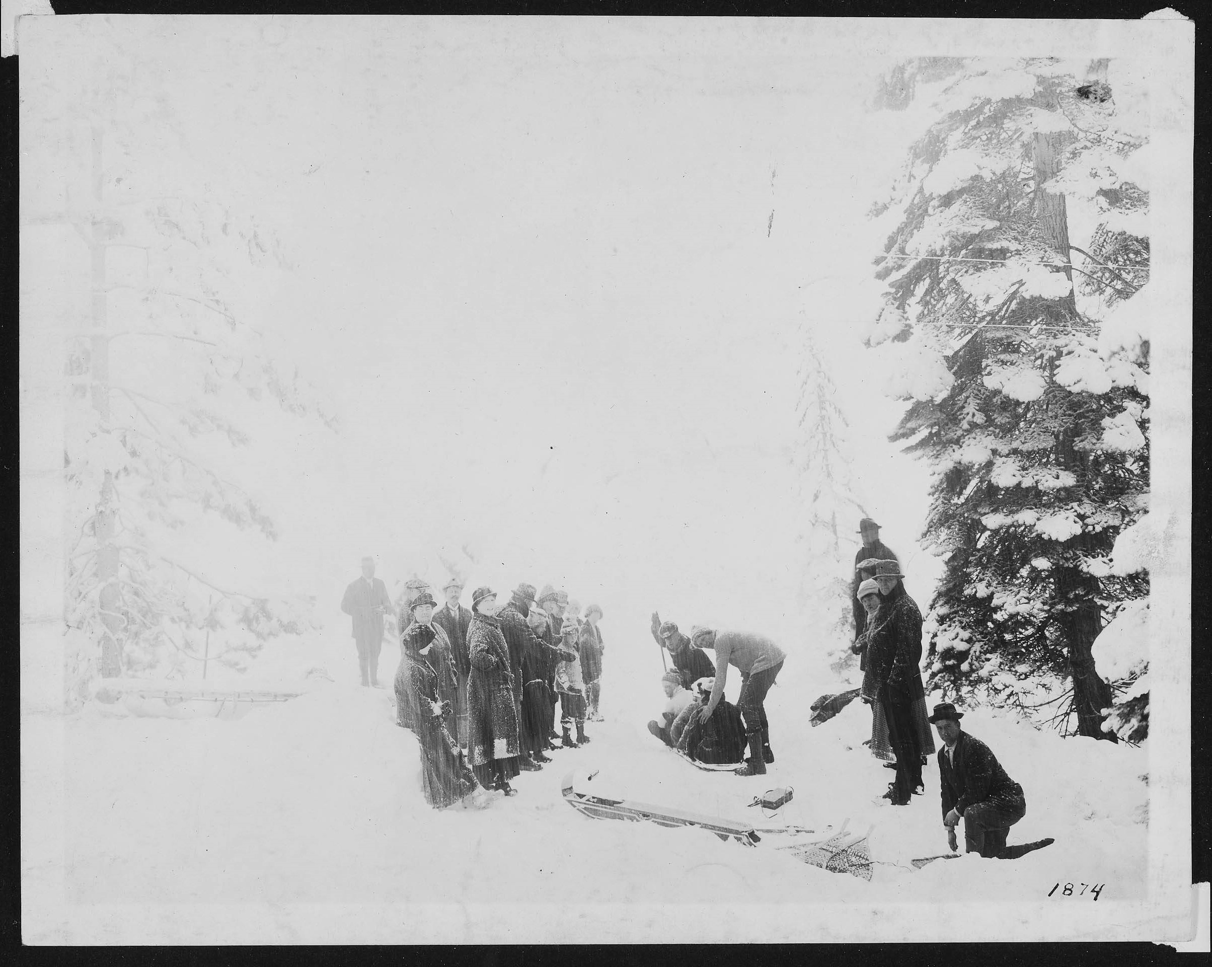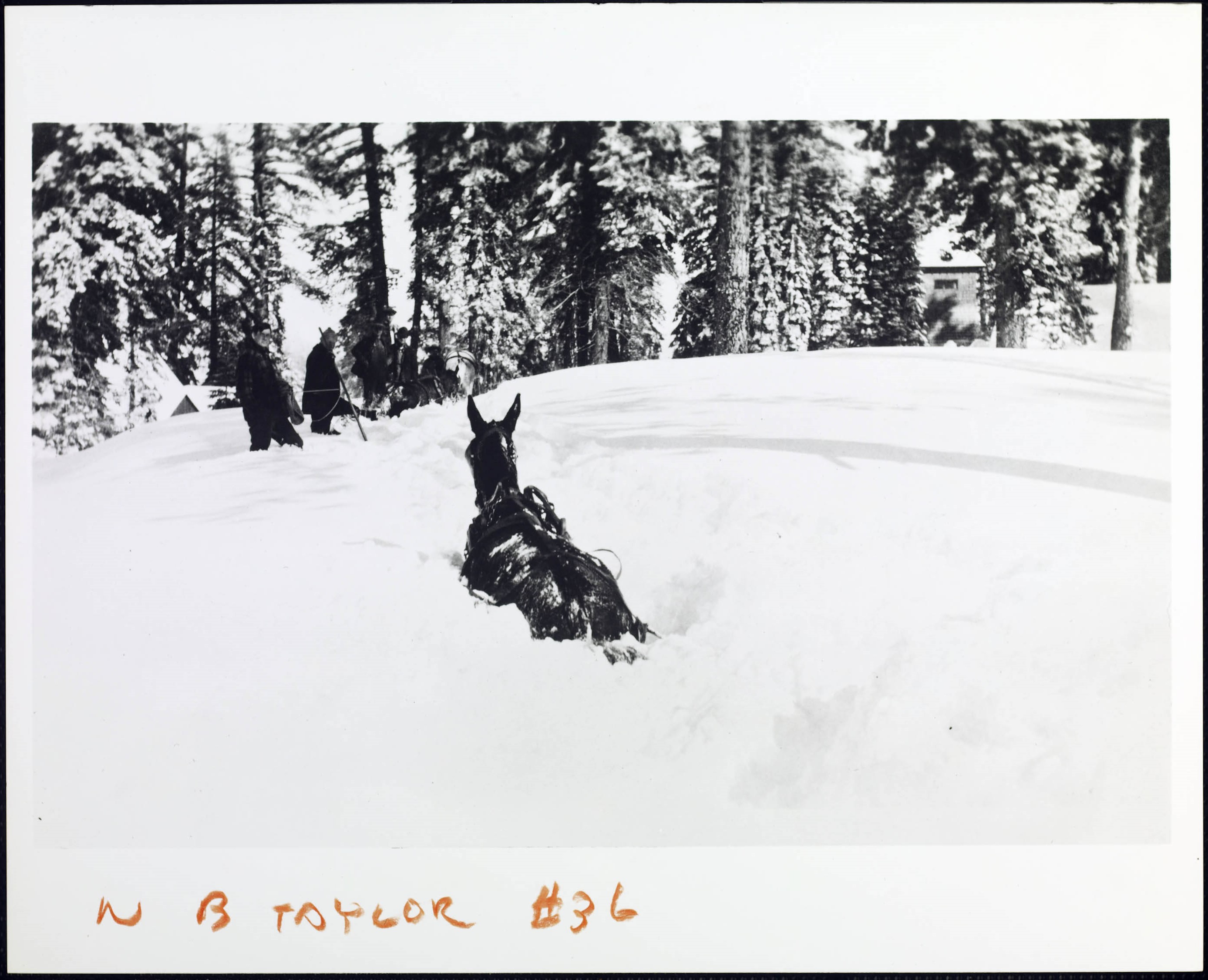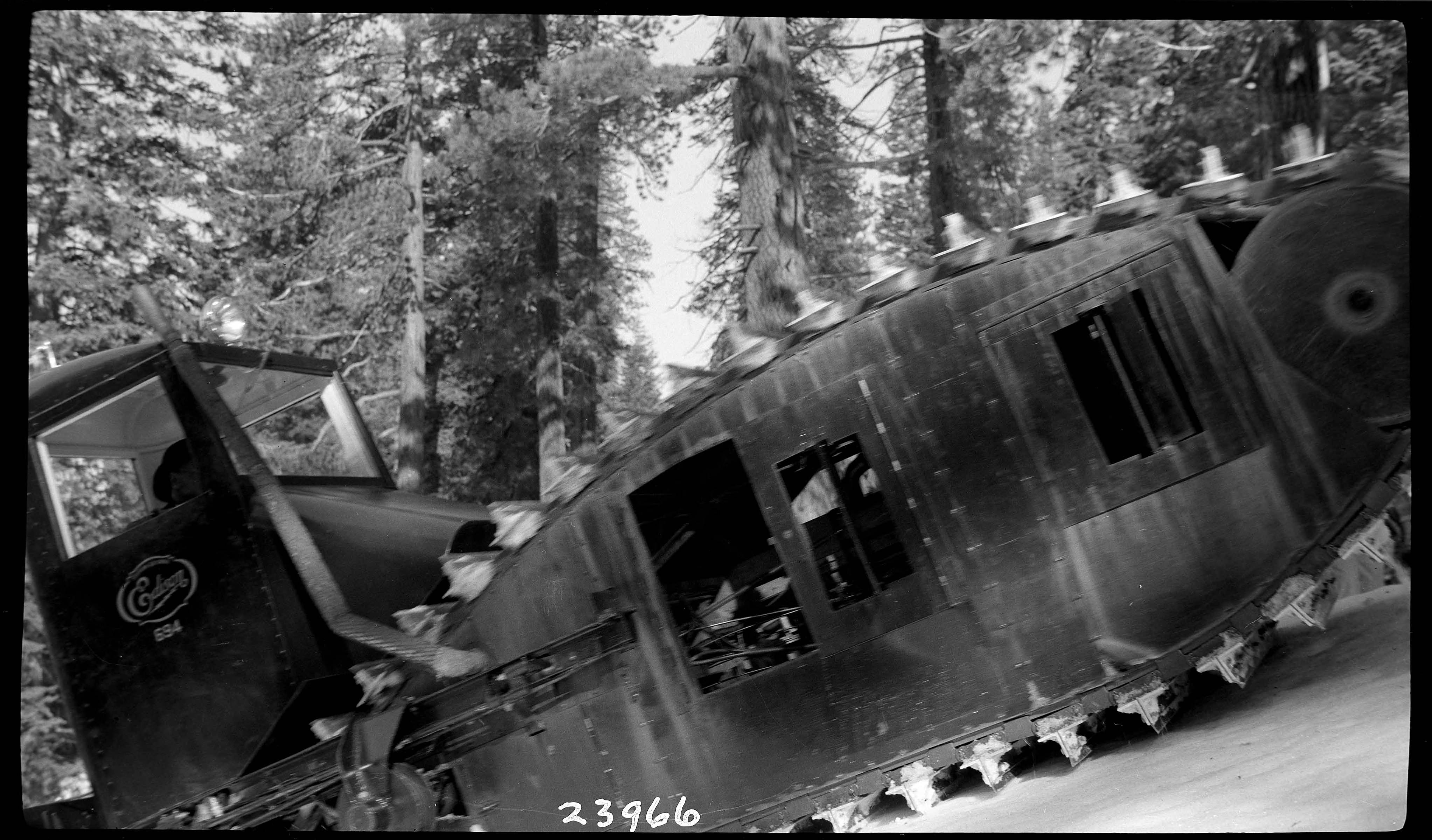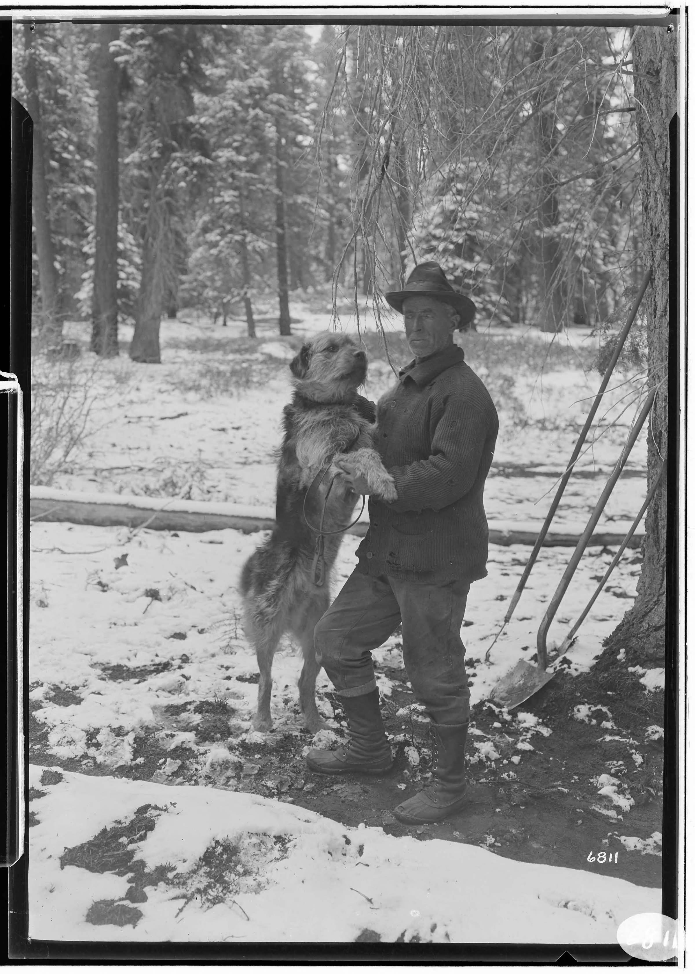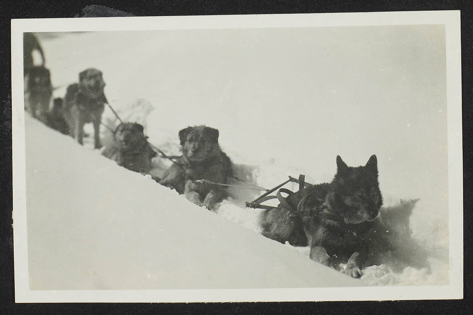 “We were faced with the problem, during winter months, of getting mail and light supplies of various kinds, particularly medicine, over Kaiser Pass with the road impassable on account of deep snow. Equipment for snow removal such as we have today had not been perfected. The decision was made to secure a dog team, the question being how to get one which was trained, with a driver, in time to be of use during the winter which was then upon us. With the assistance of Ingersoll-Rand Company, we obtained a team of seven dogs and a driver from Alaska.