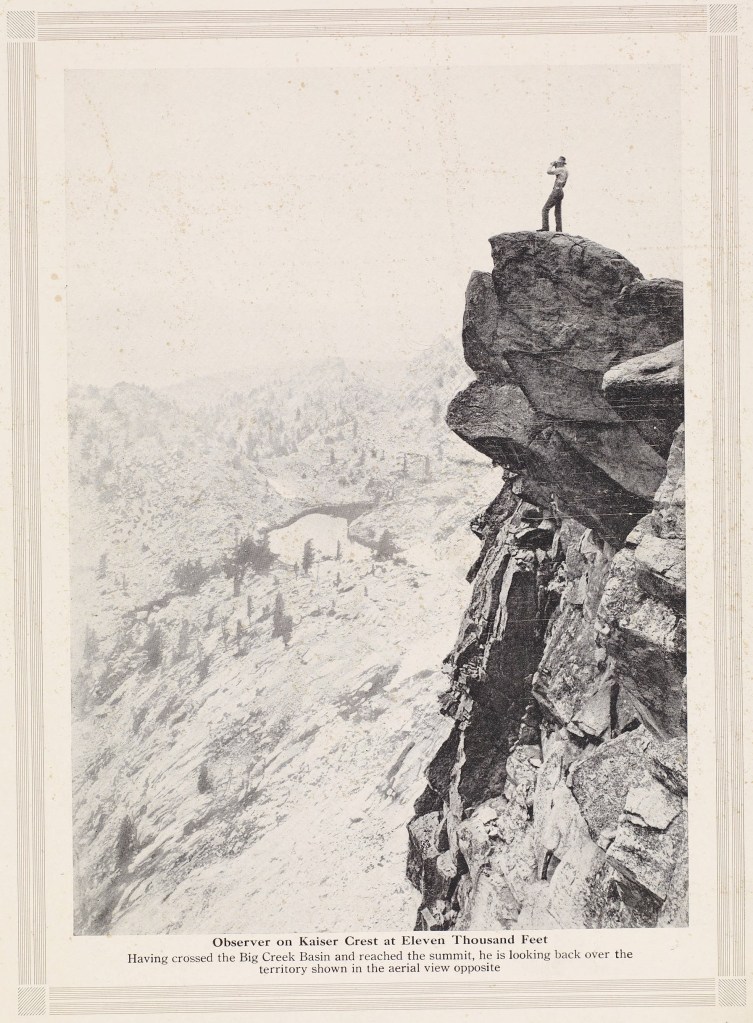 “Pictured on today’s Country Life cover is Jerry Dwyer and his famous dog team, a combination which operated between Big Creek and Florence Lake from 1920 to 1927. Dwyer and his team of Alaskan sled dogs were familiar sights to another group of doughty and hard-as-nails mountaineers, the stream gaugers. From 1920 to 1925 there was 20 of these rugged individuals living in primitive camps throughout the San Joaquin River drainage area, challenging weather, terrain and the general handicaps of isolation.