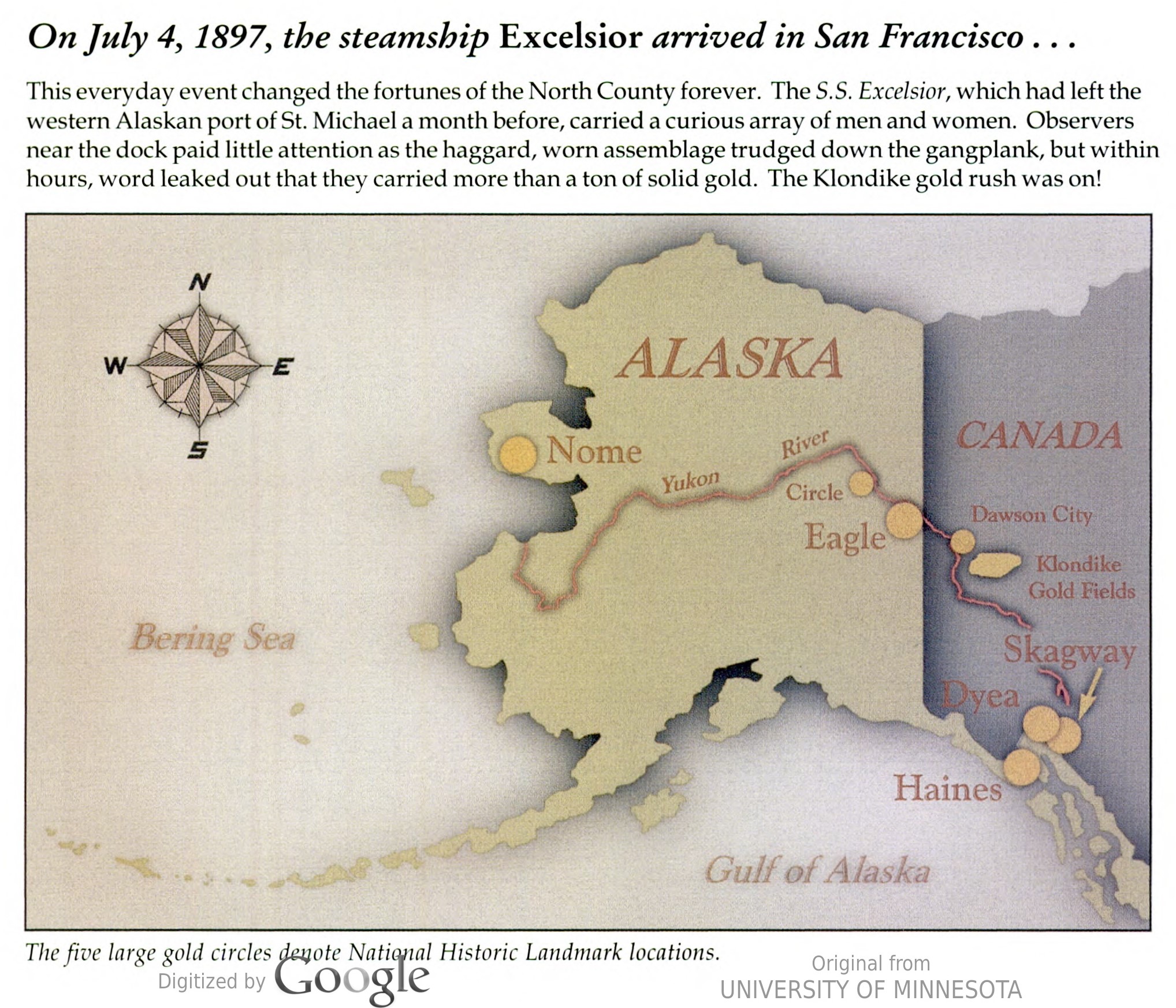 -Excerpt courtesy of Google Books, “Two Years in the Klondike and Alaskan Gold-fields: A Thrilling Narrative of Personal Experiences and Adventures in the Wonderful Gold Regions of Alaska and the Klondike,” by William B. Haskell, Hartford Publishing Company, Alaska, 1898