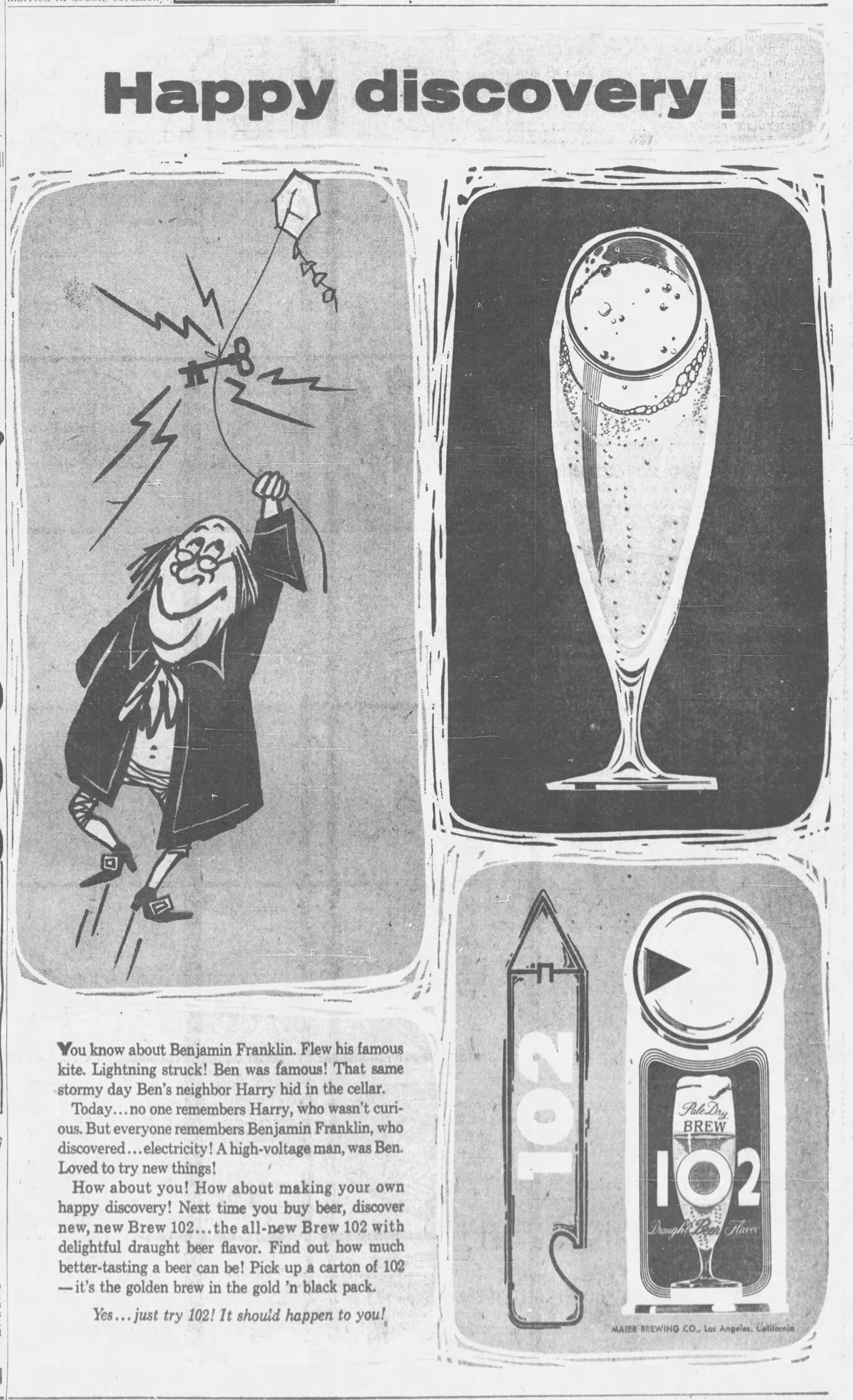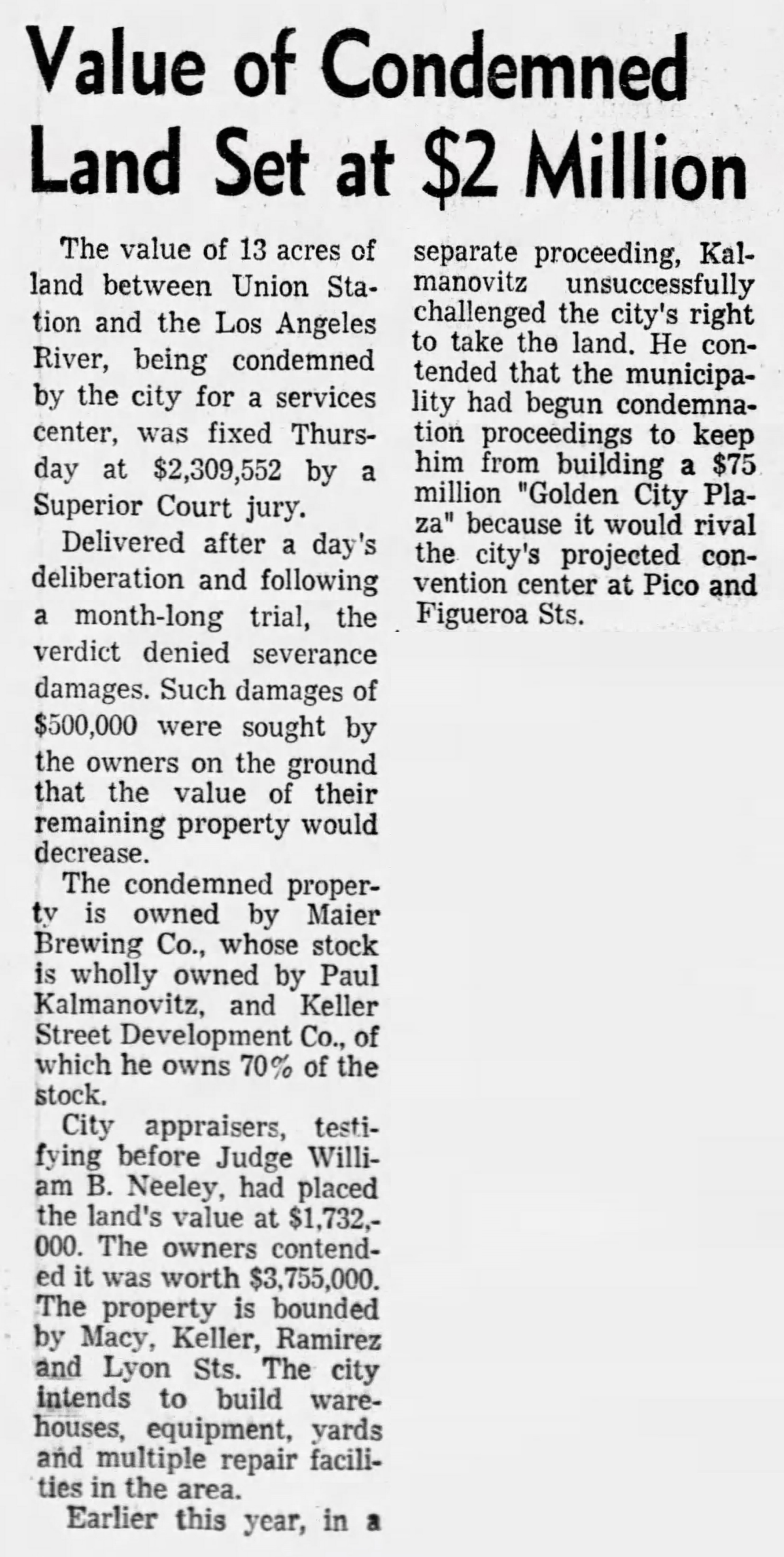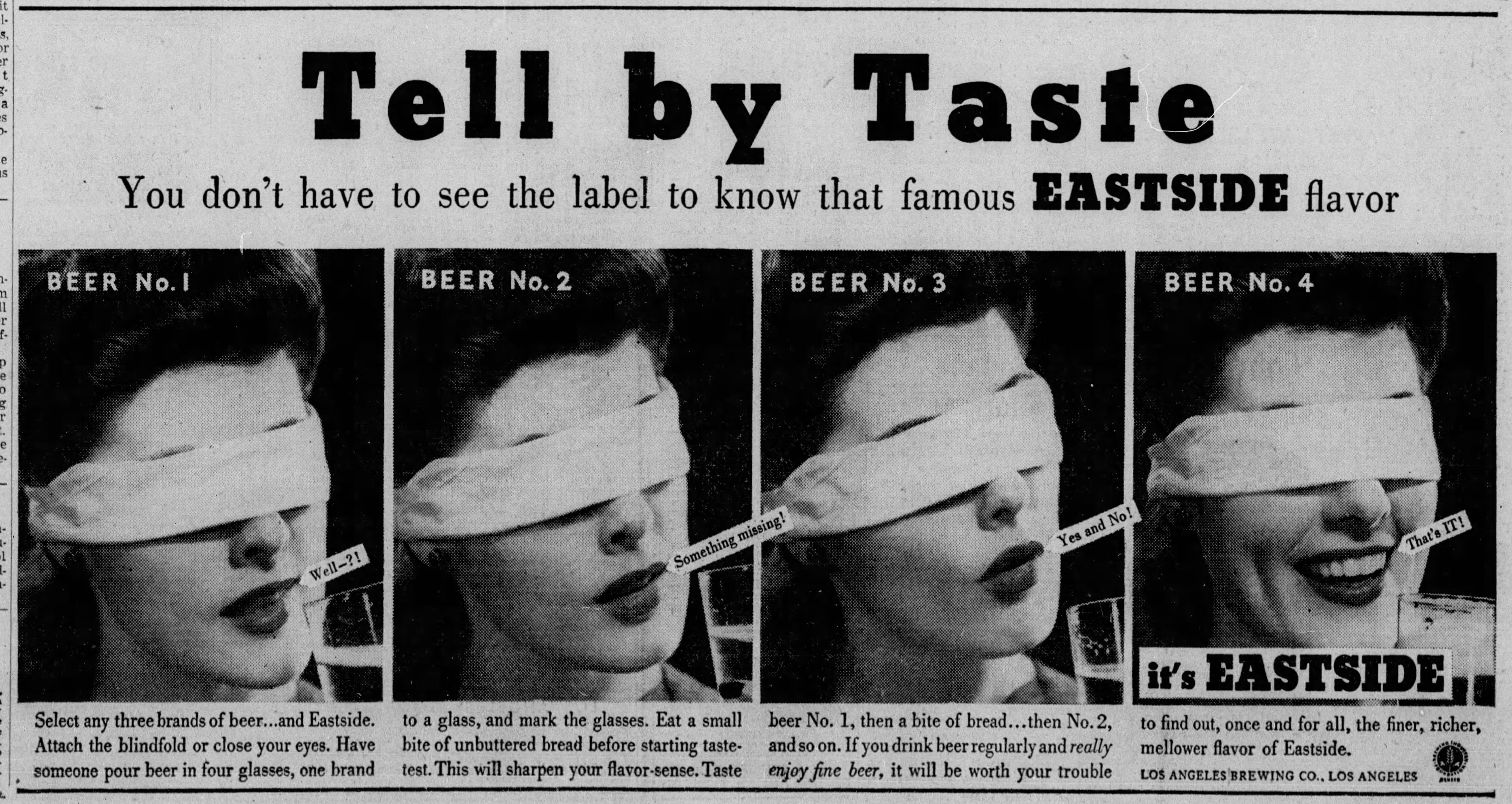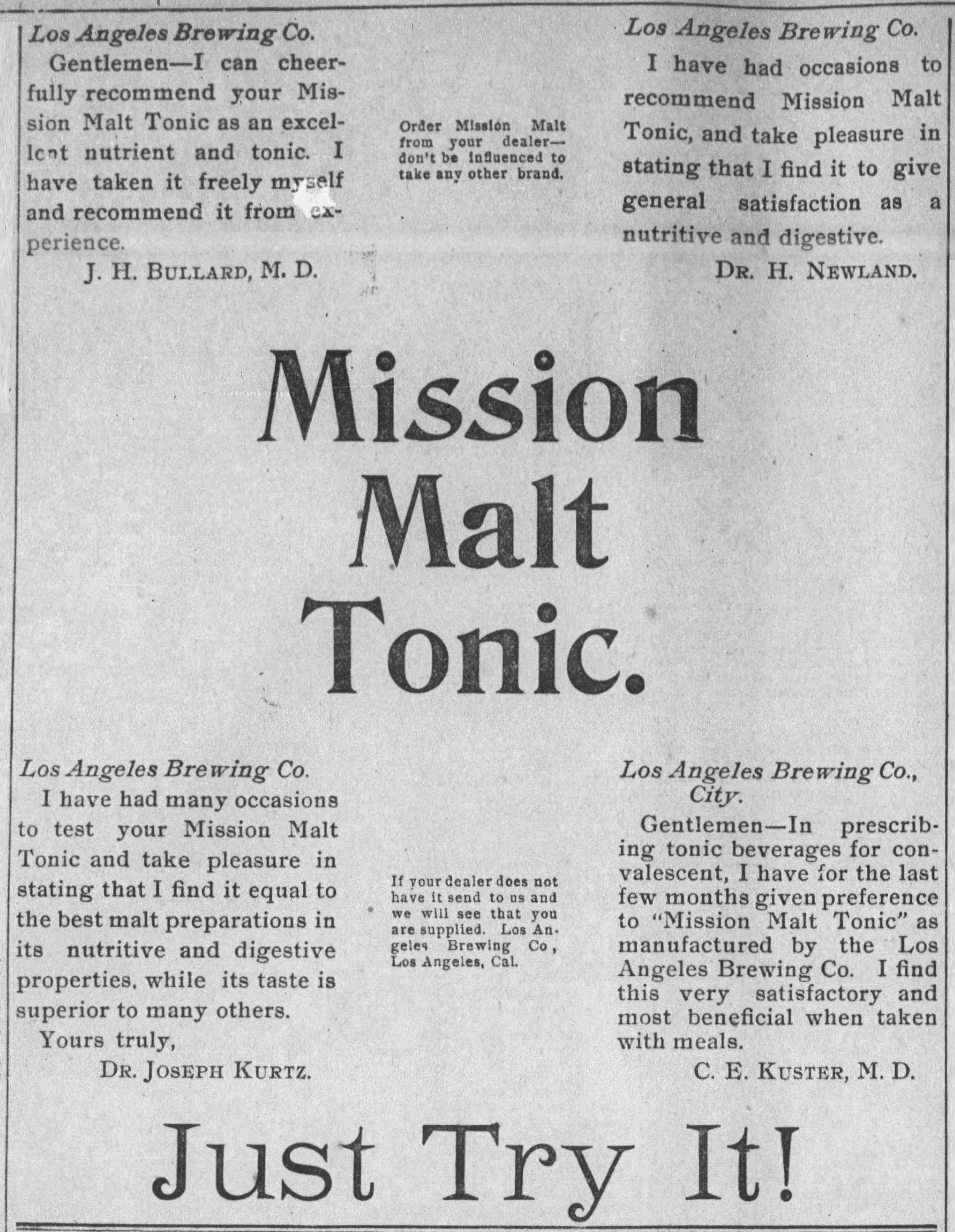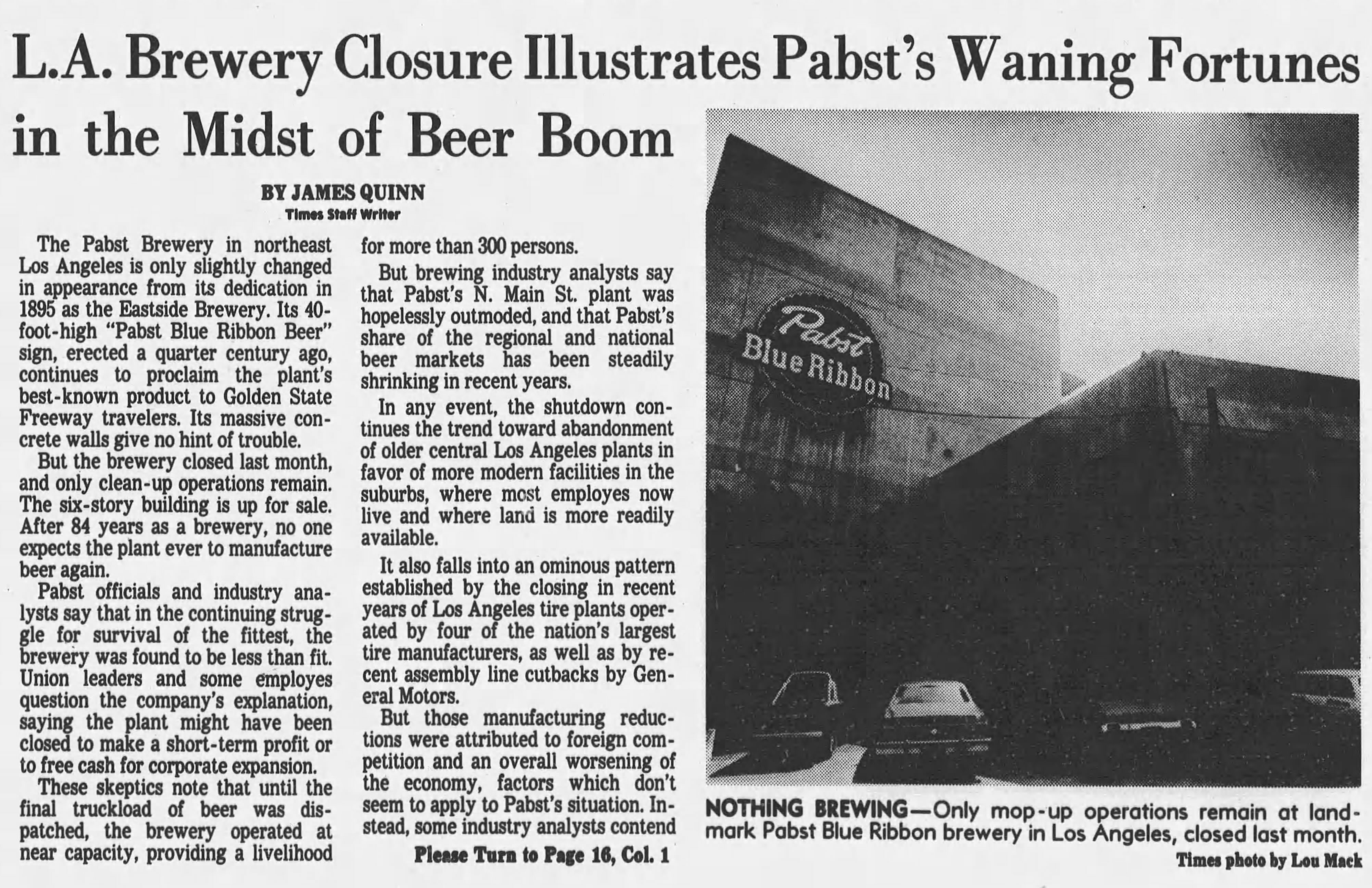 “The Maier Brewing Company started as the Ed. Preuss & Company Philadelphia Brewery in 1874. The following year, it became the D. Mahlstedt Company Philadelphia Brewery, and then the Maier & Zobelein Brewery, located in Los Angeles, in 1882. When Maier and Zobelein dissolved their partnership in 1907, the brewery became the Maier Brewing Company, located at 500 East Commercial Street, Los Angeles. Existing for several decades, the Maier Brewing Company was purchased by the General Brewing Company in 1971, but was later closed in 1974. Eastside Beer was bottled by Los Angeles Brewing Company, owned by George Zobelein, a former partner of Maier and Zobelein Brewery. After the two split in 1907, Zobelein named his new beer ‘Eastside’ since Los Angeles Brewing Company was located east of the Los Angeles River at 600 Moulton Avenue, and the 1920-2026 block of Main Street. The bottling facility was eventually sold and became the Pabst Brewery.”
