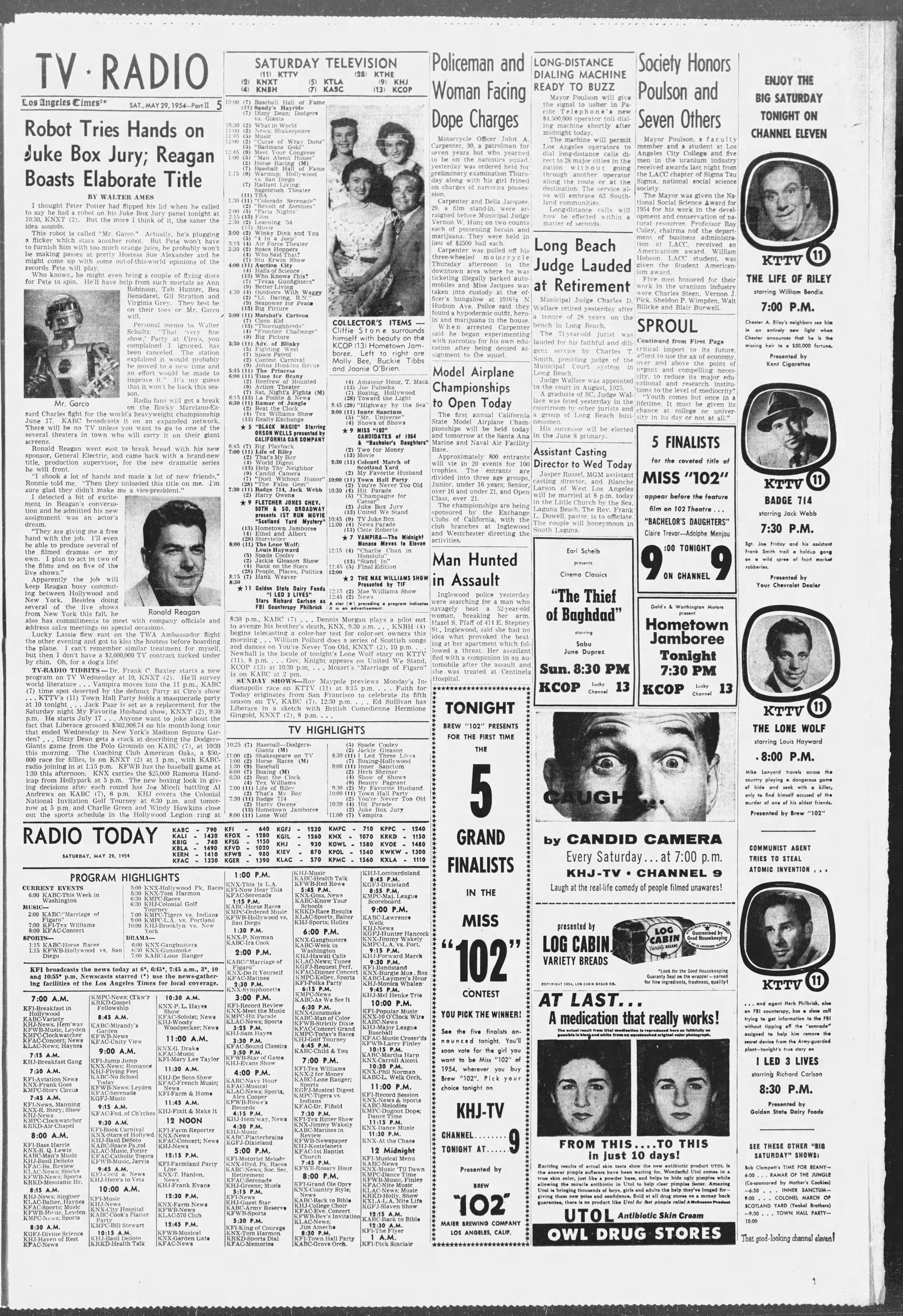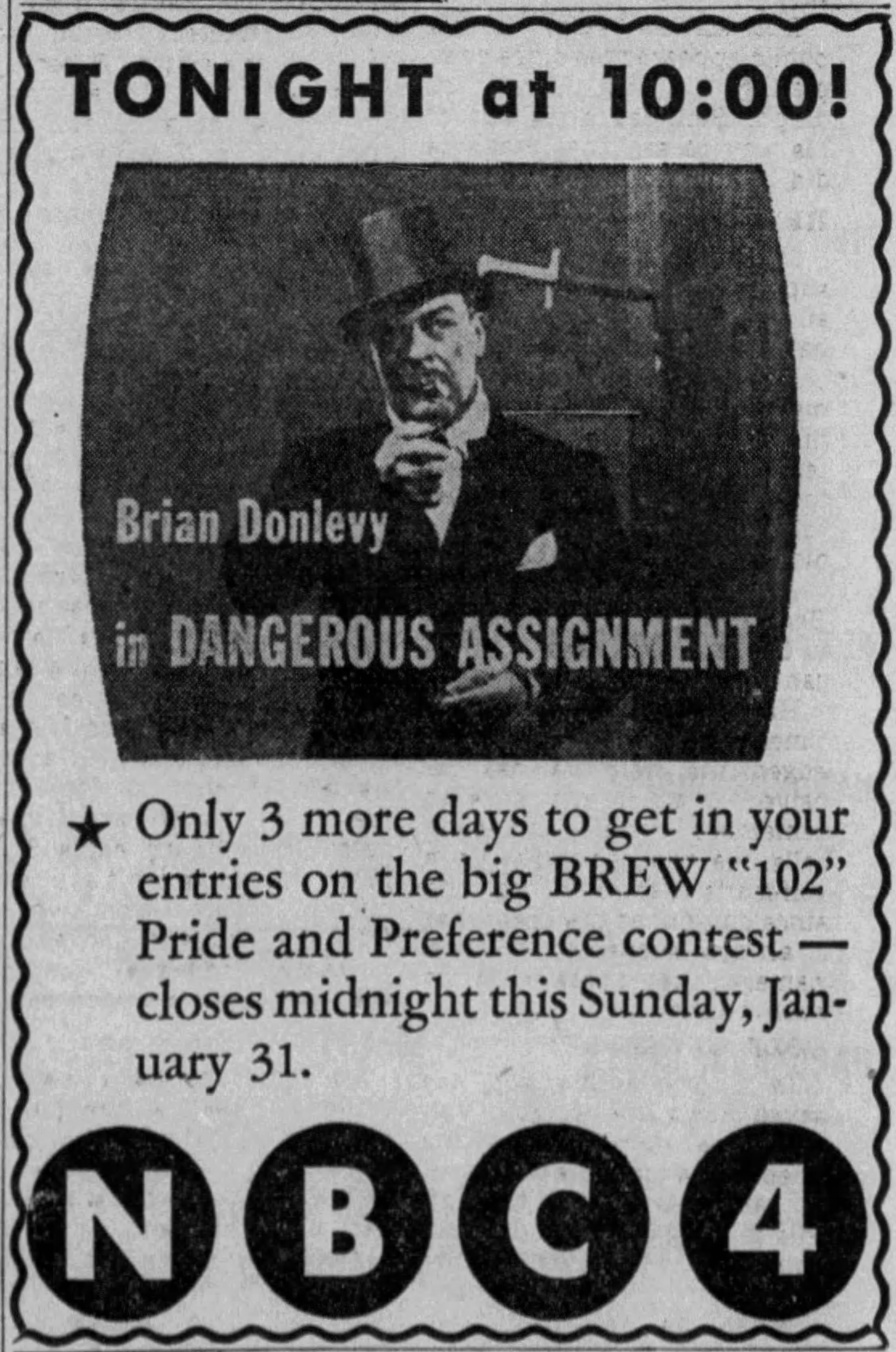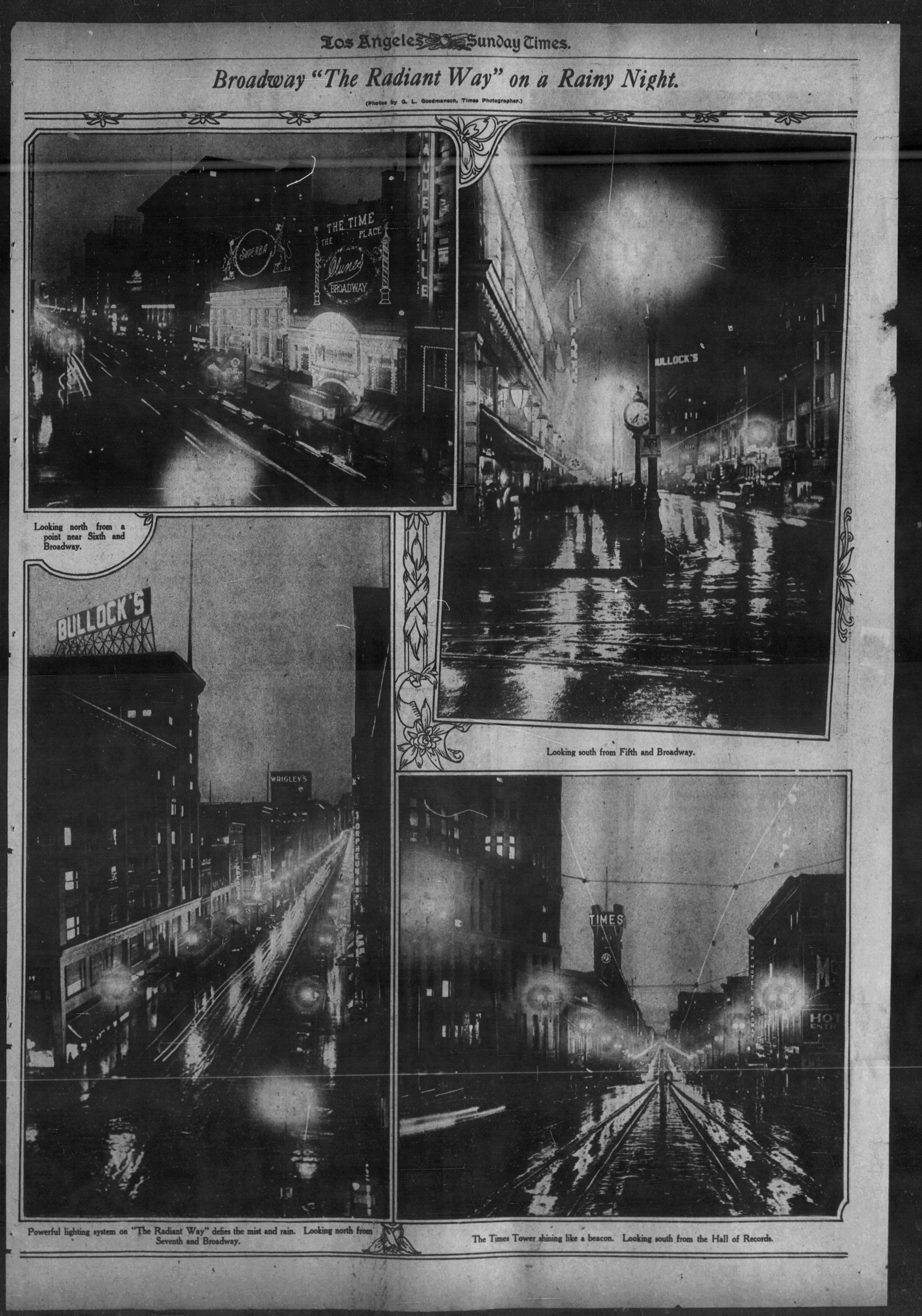 Photograph caption dated october 26, 1953 reads, “It’s last reminder of a Los Angeles sample room when lunch was free and beer was sold for a nickel.” Next to City Hall and a building under construction, a painted sign on a brick building promotes “The 2 Johns sample rooms, Maier & Zobell, Pilsener beer.” -Image courtesy of Los Angeles Public Library, Herald Examiner Collection, 1953