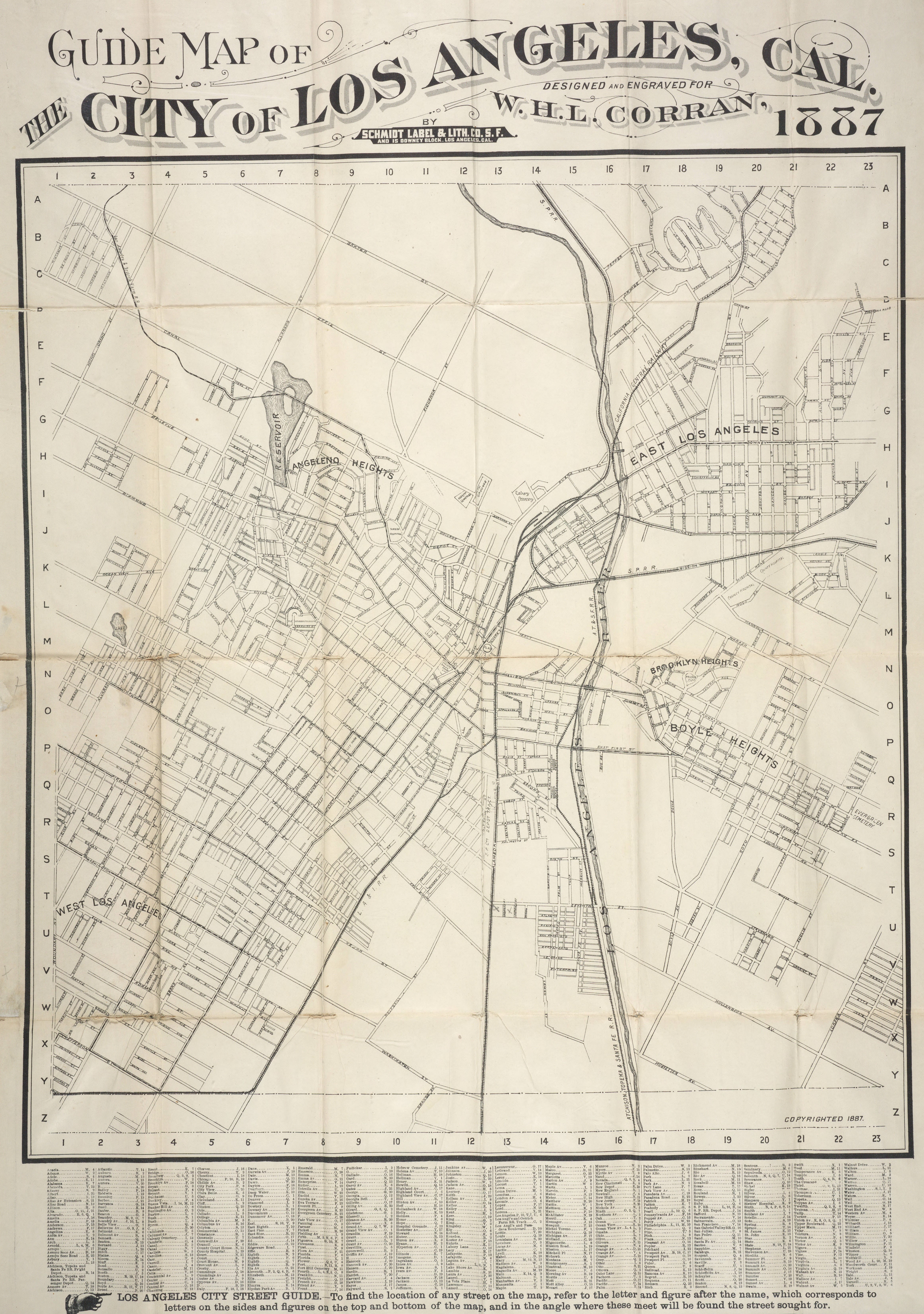 -Images courtesy of Huntington Digital Library, Huntington Rare Book Maps, “Guide Map of the City of Los Angeles, Cal.,” by W. H. L. Corran, Schmidt Label & Lith. Co., San Francisco, 1887