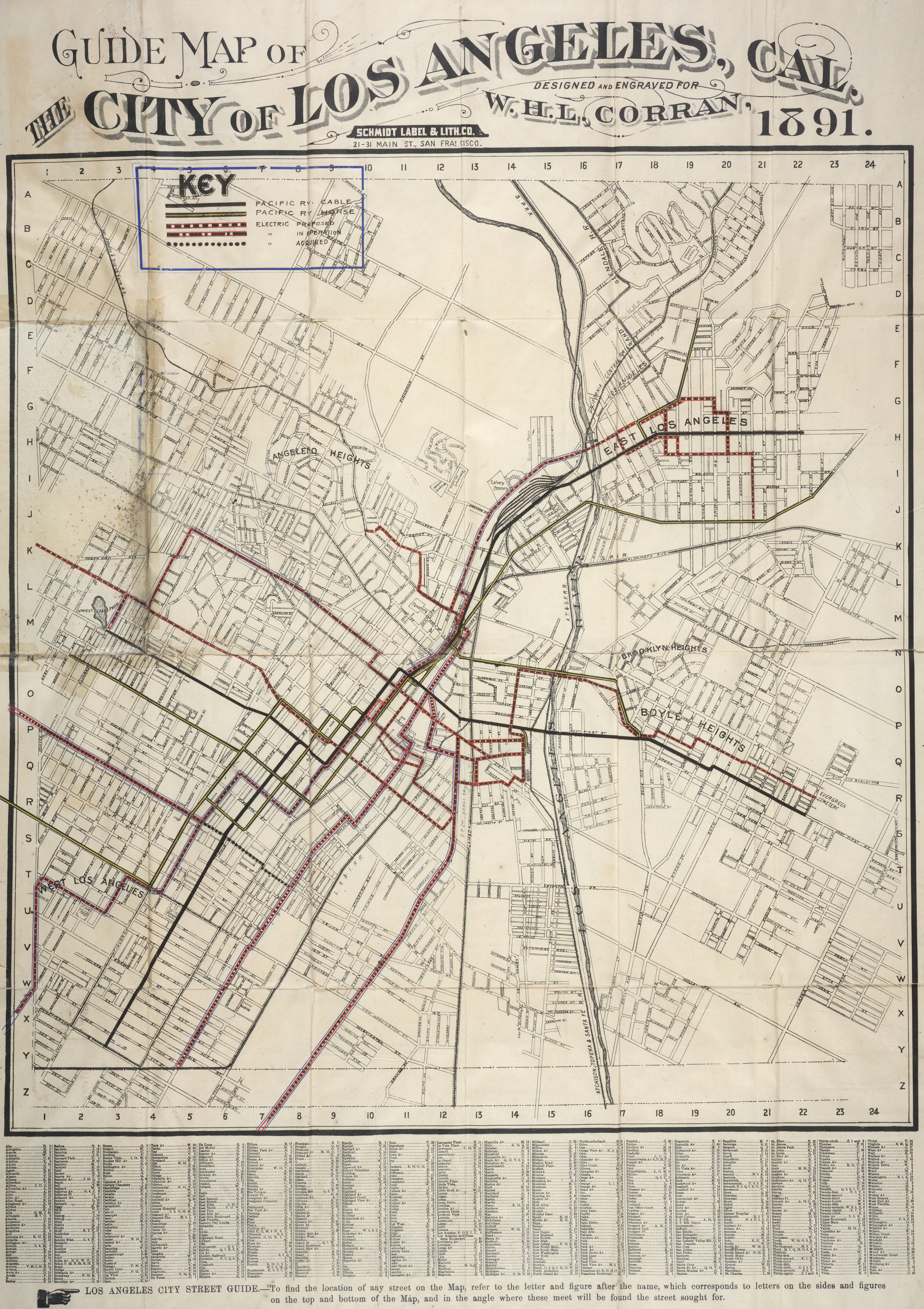 -Images courtesy of Huntington Digital Library, Huntington Rare Book Maps, “Guide Map of the City of Los Angeles, Cal.,” by W. H. L. Corran, Schmidt Label & Lith. Co., San Francisco, 1891