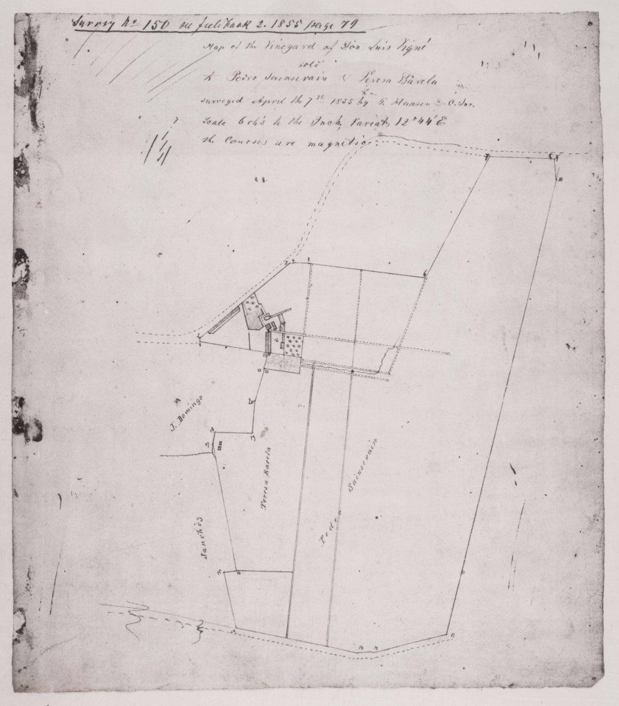 Map of the Vineyard of Don Luis Vigné sold to Pedro Sainsevain and Teresa Barela — 1855