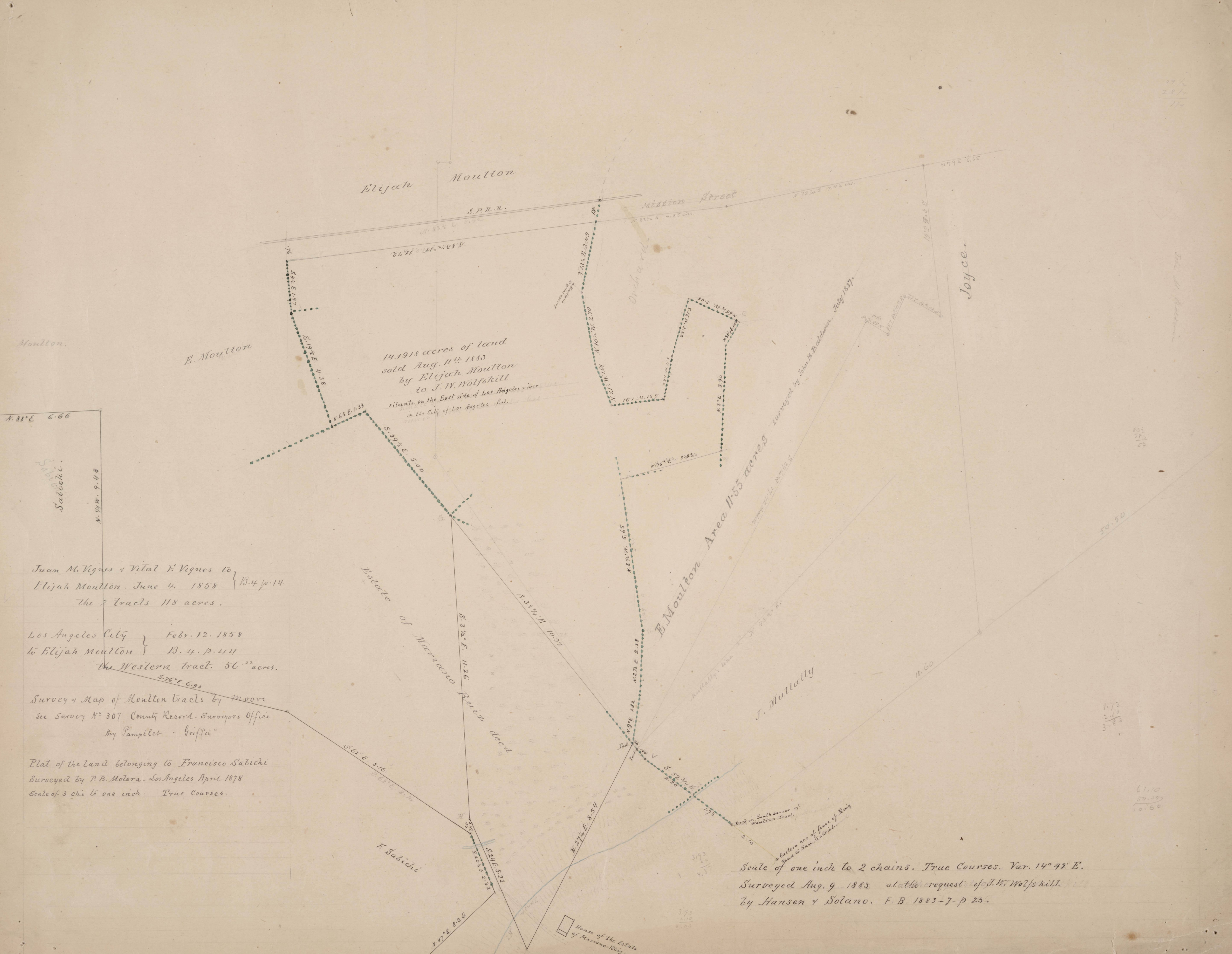 -Image courtesy of the Huntington Digital Library, Solano-Reeve collection, “Moulton Tracts east of Los Angeles River,” by Hanen & Solano, August 9, 1883