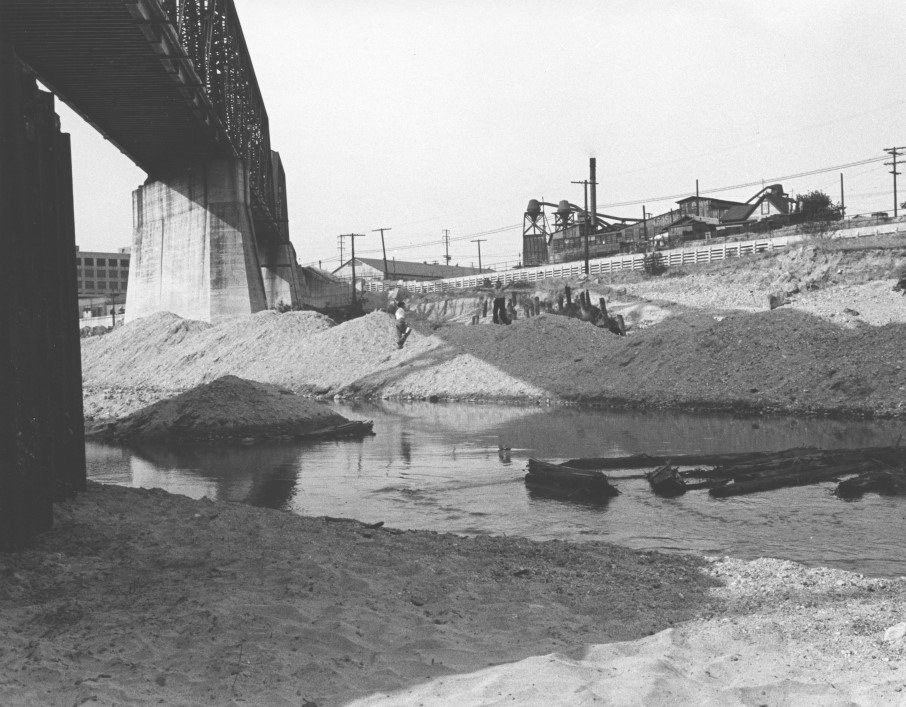 "Lewis Macadams points toward the ancient smokestack of the Edison Electric Plant. Thick grids of trackage, classification and storage yards, lumber and produce depots, breweries, foundries, and slum housing. Sixty thousand blue-collar workers and their families were crowded in the stretch of downtown between the river and Alameda Street from Elysian Park to Washington Boulevard."