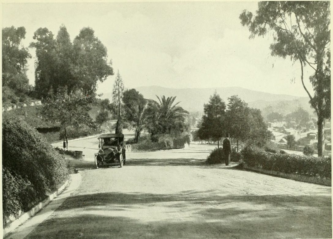 "The site selected for the pueblo of Los Angeles was picturesque and romantic. From where Alameda street now is to the eastern bank of the river the land was covered with a dense growth of willows, cottonwoods and alders; while here and there, rising above the swampy copse, towered a giant aliso (sycamore). Wild grape vines festooned the branches of the trees and wild roses bloomed in profusion. Behind the narrow shelf of mesa land where the pueblo was located rose the brown hills, and in the distance towered the lofty Sierra Madre Mountains."