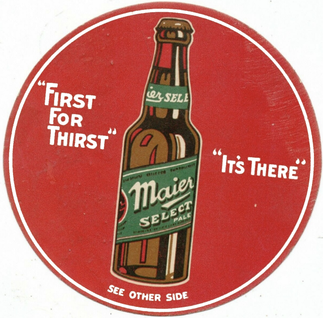 "The Maier Brewing Company started as the Ed. Preuss & Company Philadelphia Brewery in 1874. The following year, it became the D. Mahlstedt Company Philadelphia Brewery, and then the Maier & Zobelein Brewery, located in Los Angeles, in 1882. When Maier and Zobelein dissolved their partnership in 1907, the brewery became the Maier Brewing Company, located at 500 East Commercial Street, Los Angeles. Existing for several decades, the Maier Brewing Company was purchased by the General Brewing Company in 1971, but was later closed in 1974. Eastside Beer was bottled by Los Angeles Brewing Company, owned by George Zobelein, a former partner of Maier and Zobelein Brewery. After the two split in 1907, Zobelein named his new beer 'Eastside' since Los Angeles Brewing Company was located east of the Los Angeles River at 600 Moulton Avenue, and the 1920-2026 block of Main Street. The bottling facility was eventually sold and became the Pabst Brewery."