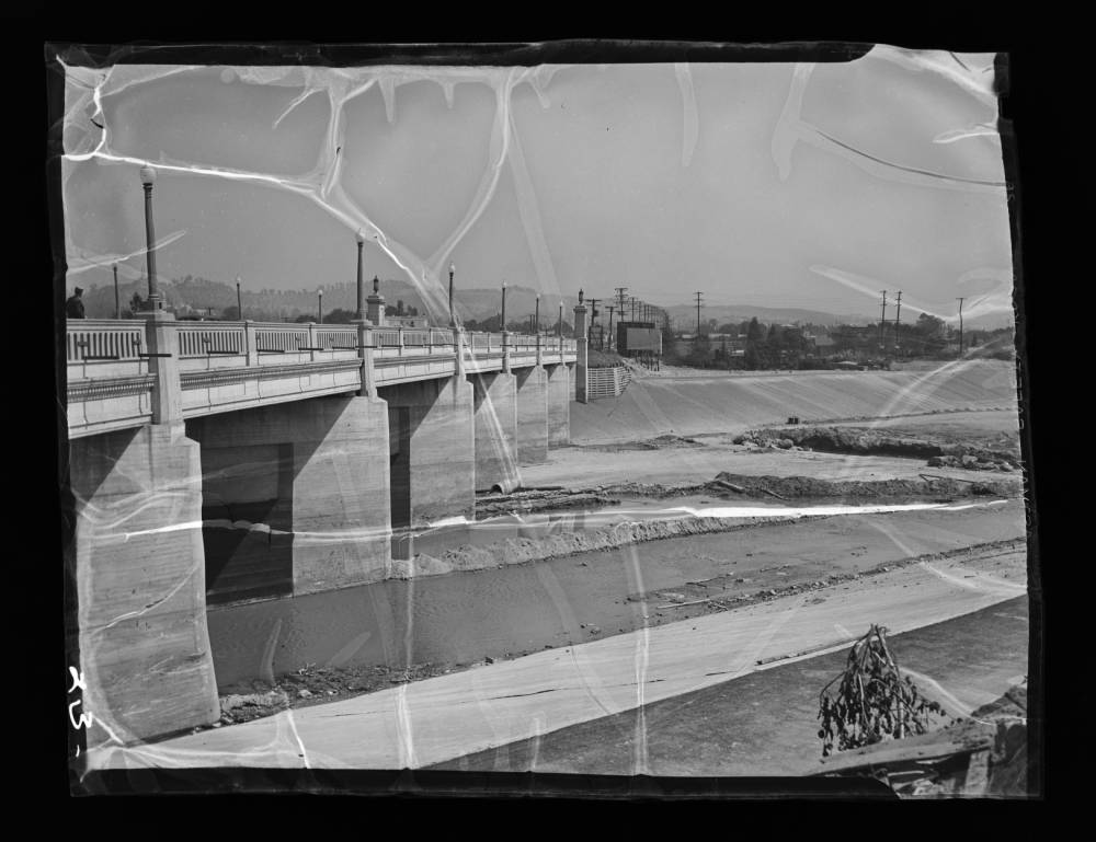 "Up Aliso St. by the forgotten spot where the giant sycamores of the Vignes Ranch once flourished the party proceeded past gas plants, iron foundries, laundries, junk yards and the Union Station. People of 50 different races... gazed at the strange little group in its boots, tunics and feathered hats, carrying the red and yellow standard of imperial Spain."