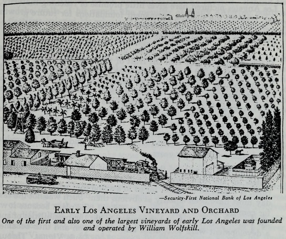 "These were the economic conditions that Jean Vignes faced during his early days in Los Angeles. His experience and background turned him away from any connection with the city’s only major business, cattle, and led him towards the vine. He was able to recognize the shortcomings of the local vineyards, and, at the same time, realize the possibilities that the area represented. The soil and climate, he knew, could support an industry and produce wines comparable to Europe’s best. He is quoted as declaring that the area was 'just the place to grow them [oranges and grape vines] to perfection.'"